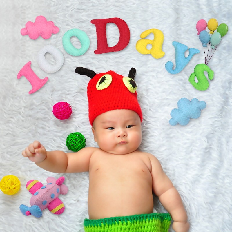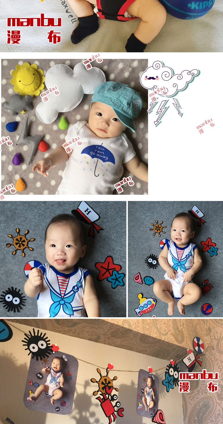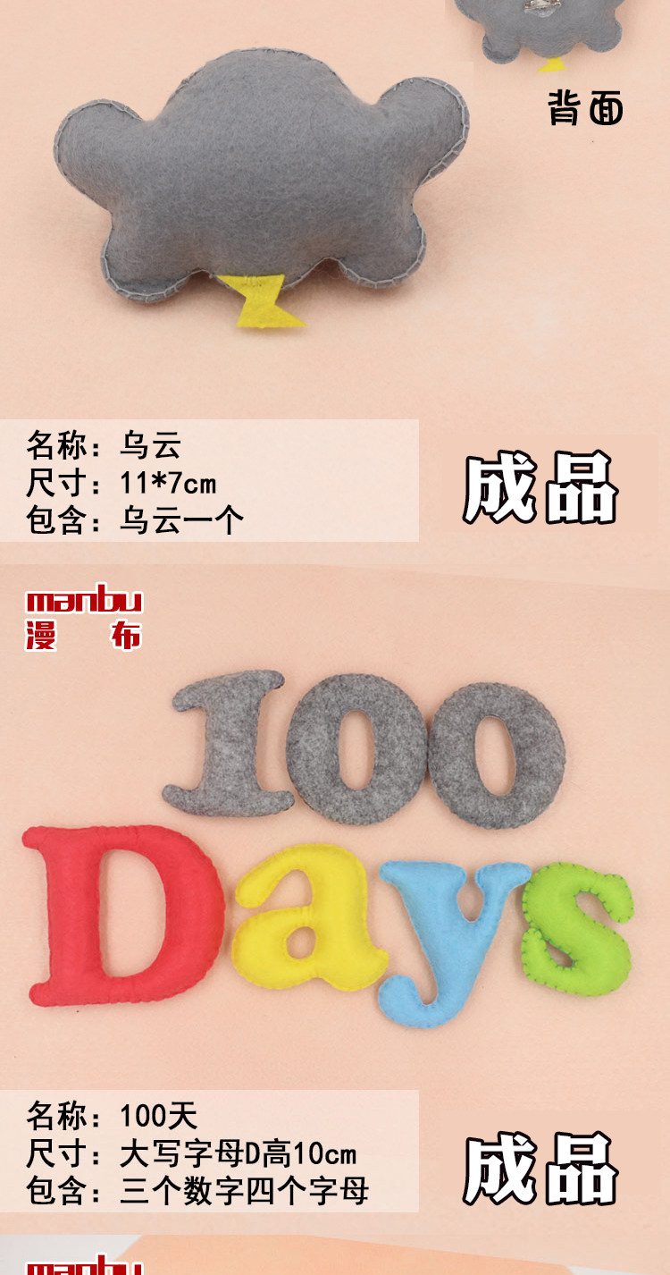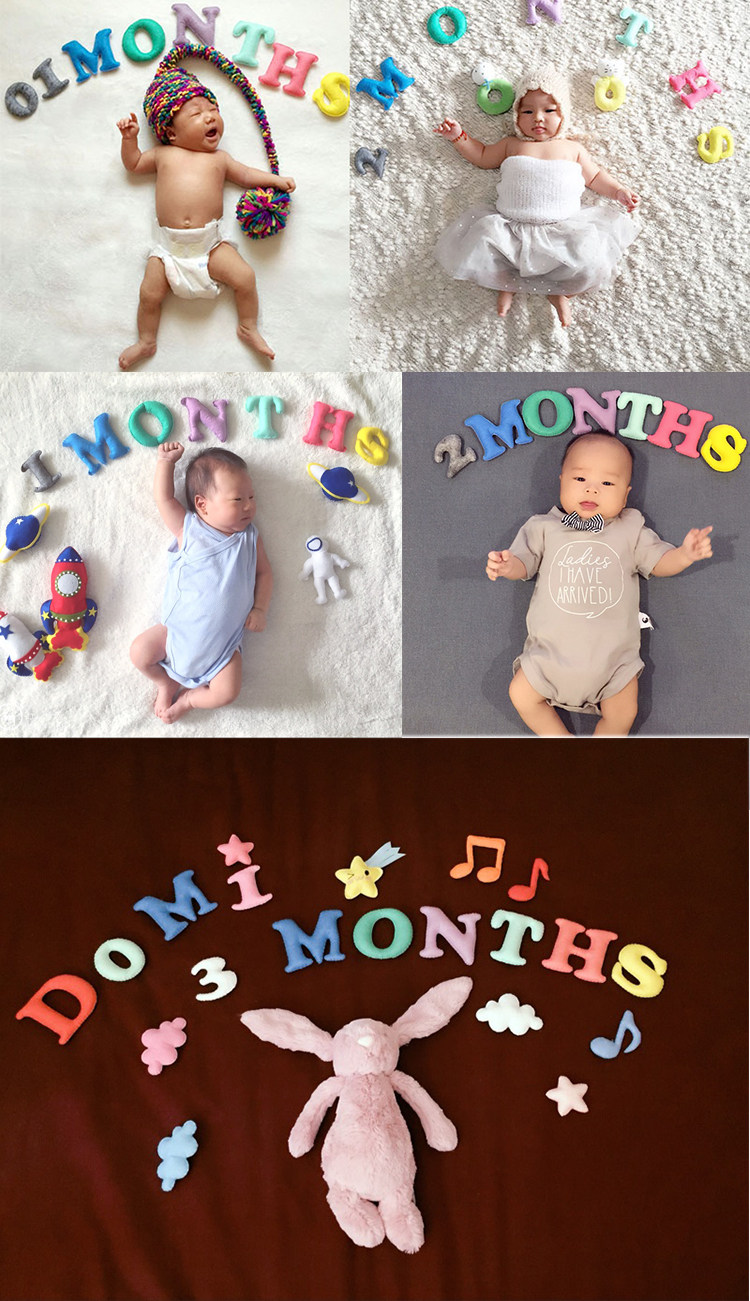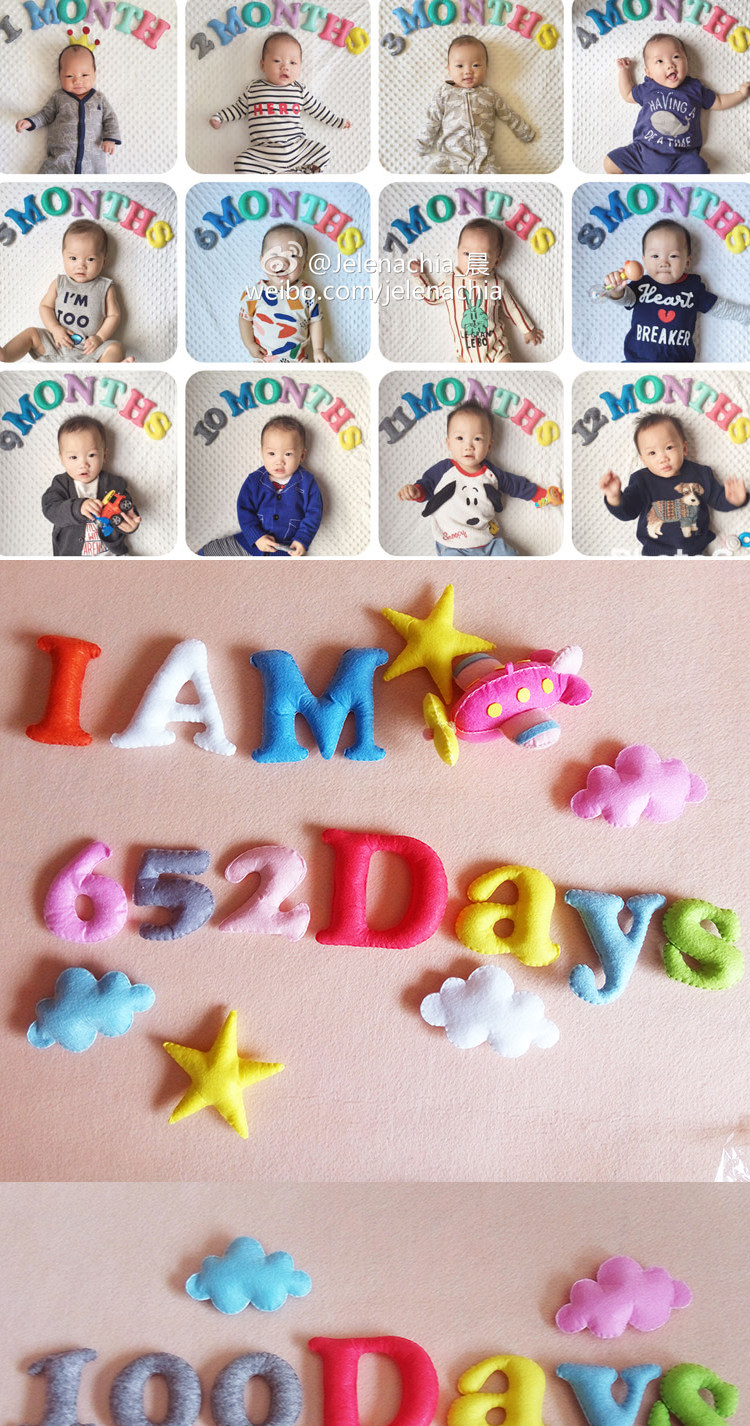 淘宝不织布拍照月份彩色英文字母数字道具婴儿满月儿童100天百天成品
