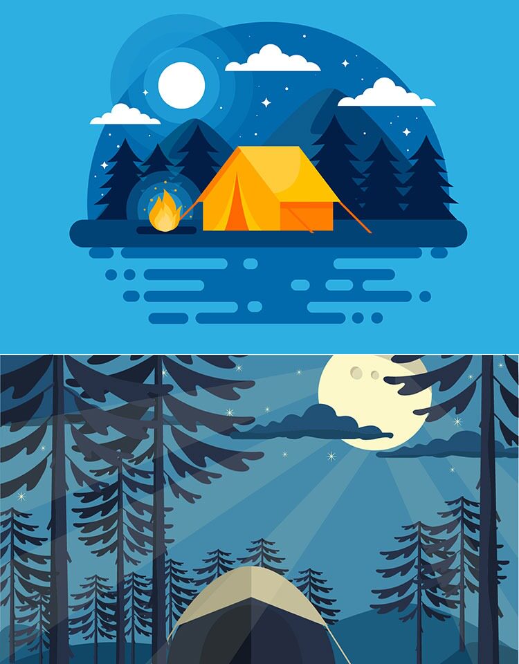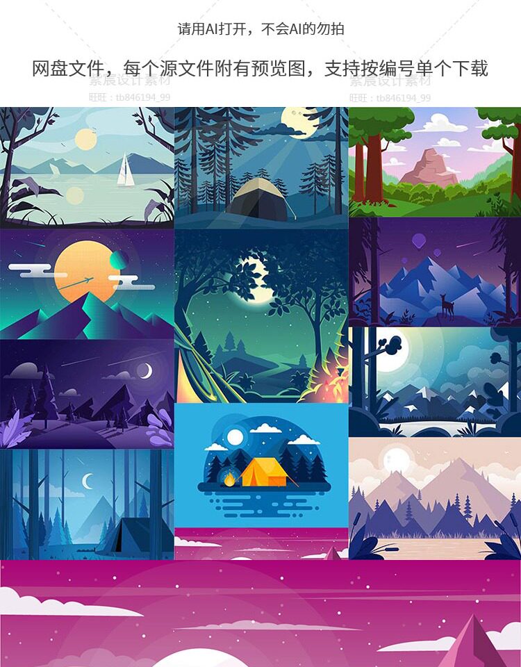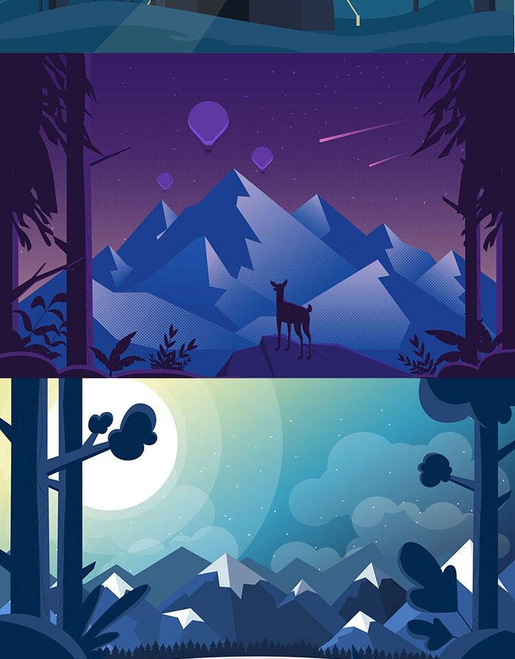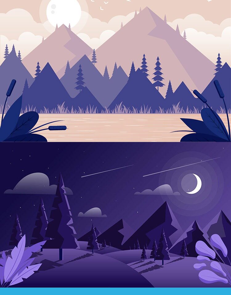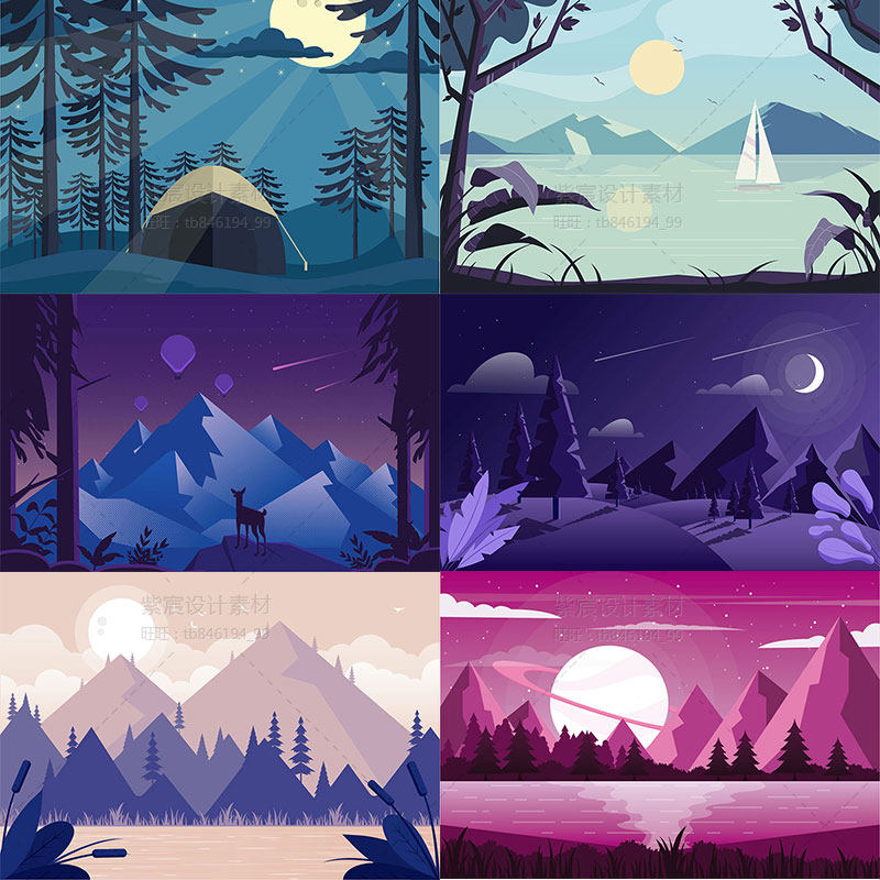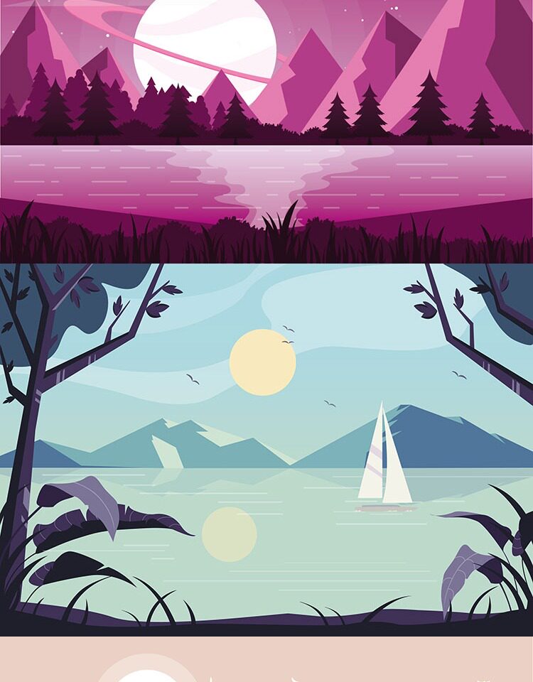 淘宝扁平化风景插画渐变游戏场景剪影banner海报背景矢量UI设计素材AI