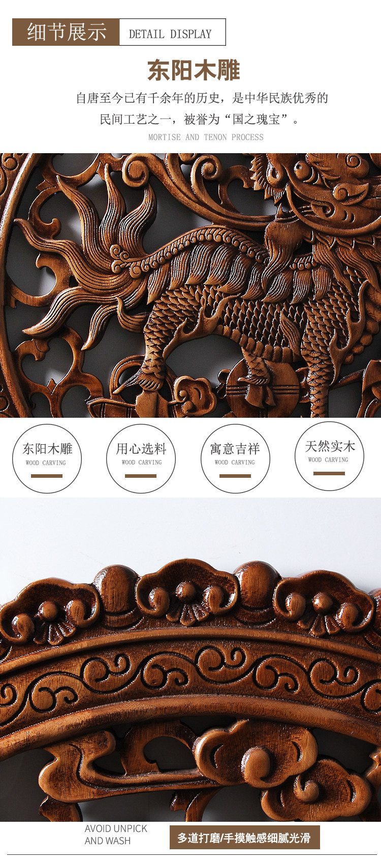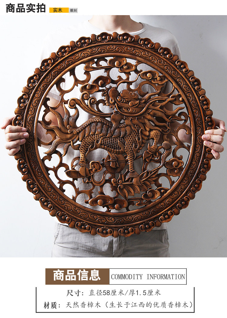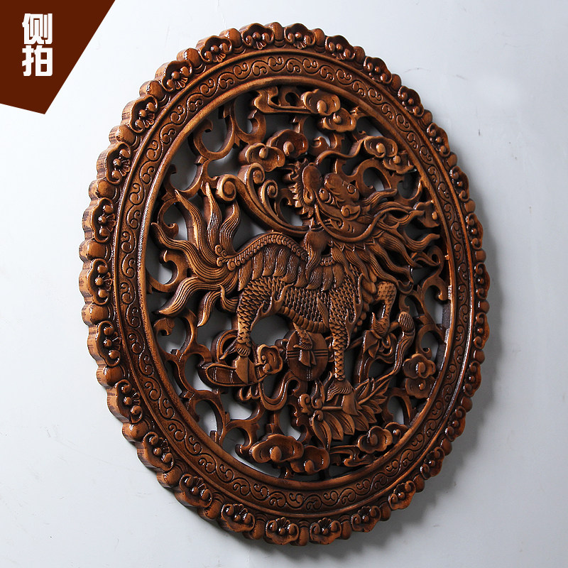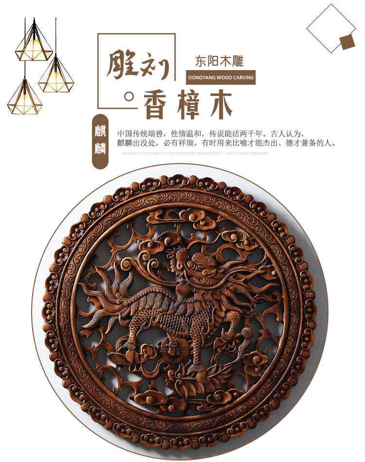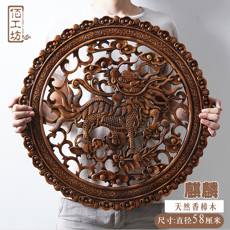 淘宝东阳木雕玄关客厅卧室餐厅房间墙面壁装饰挂件中式香樟木头 麒麟