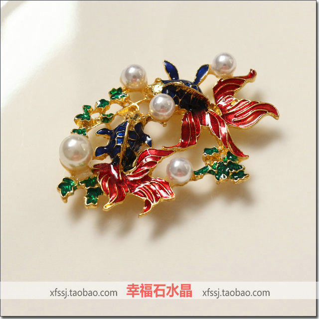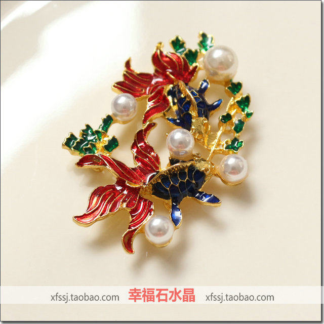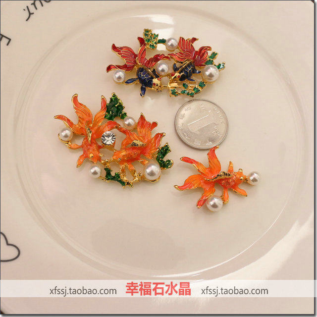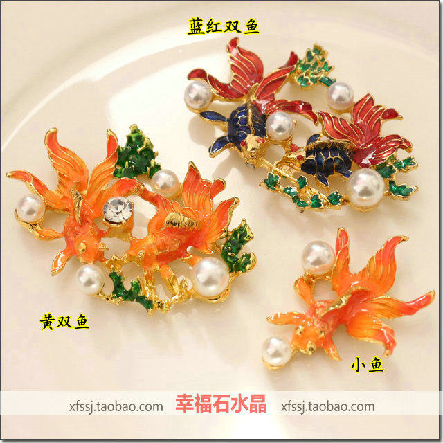 淘宝合金烧蓝手工景泰蓝双鱼戏珠金鱼 古风发簪子发冠璎珞DIY饰品配件