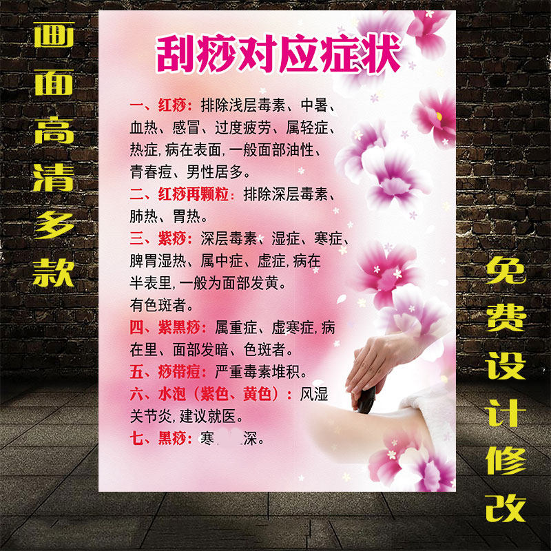 淘宝养生刮痧罐印对应症状图解析海报经络图宣传挂画图片广告穴位背部
