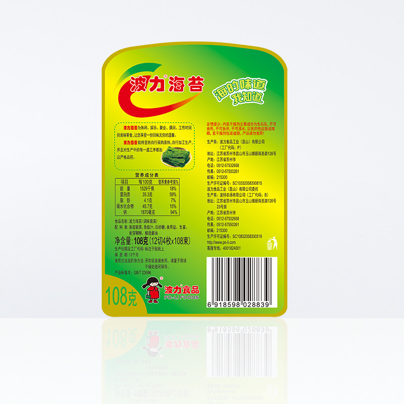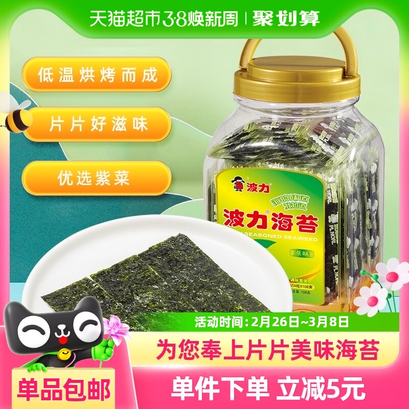 淘宝波力海苔原味108g*1罐塑罐紫菜寿司海苔海产品零食儿童 即食