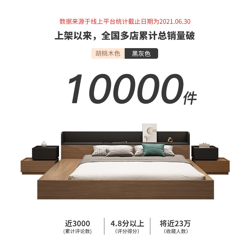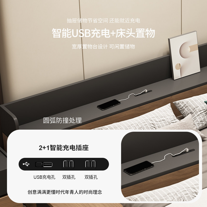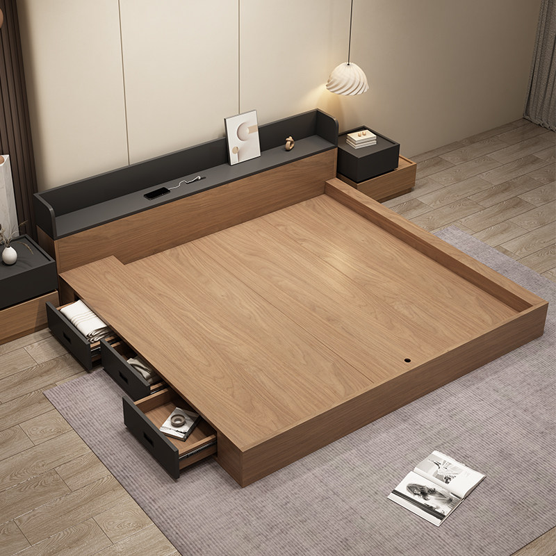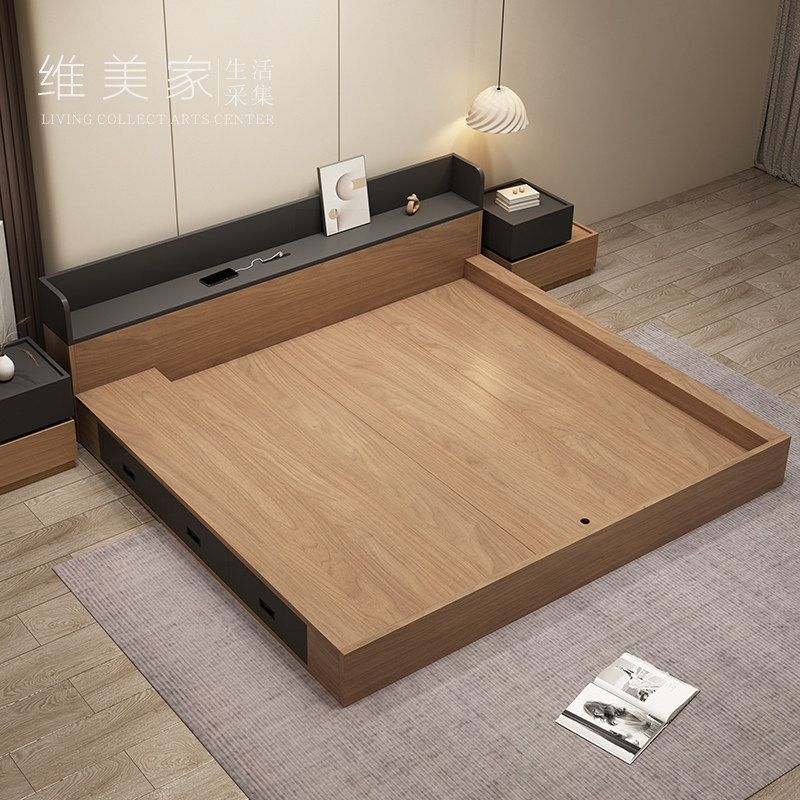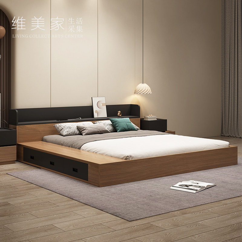 淘宝维美家北欧现代简约日式榻榻米双人床落地床主卧大床抽屉储物床架