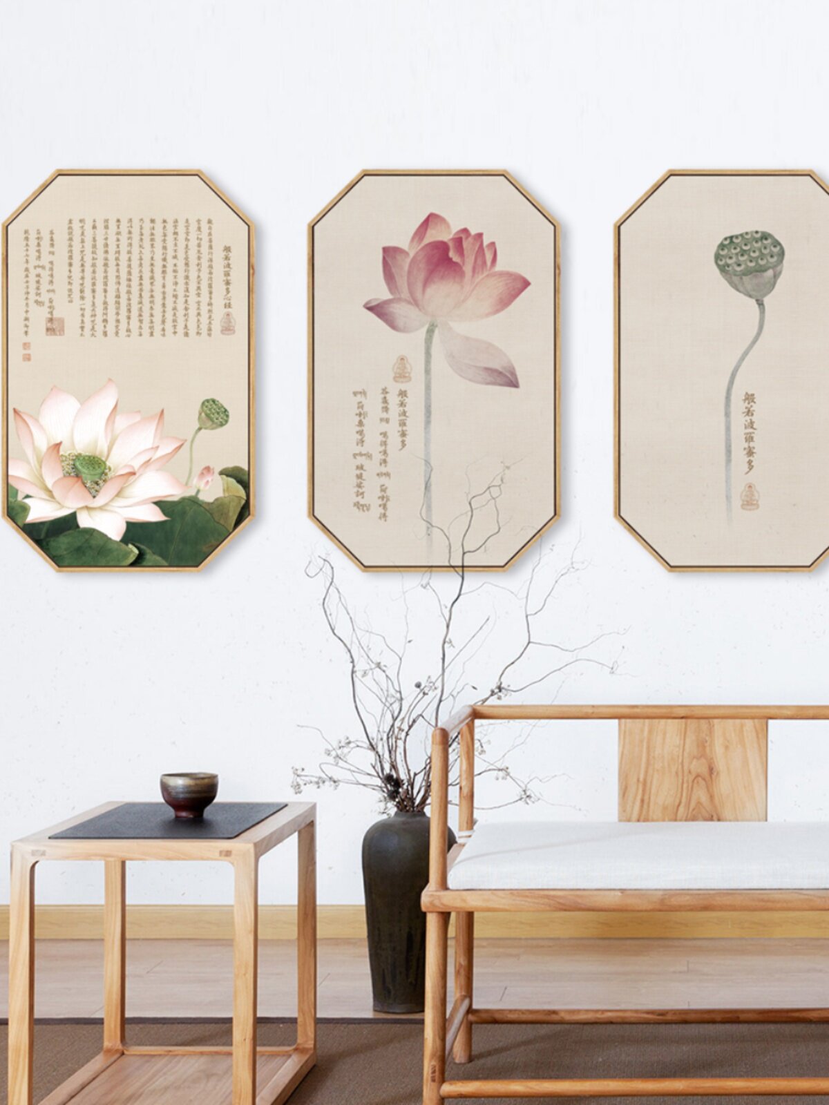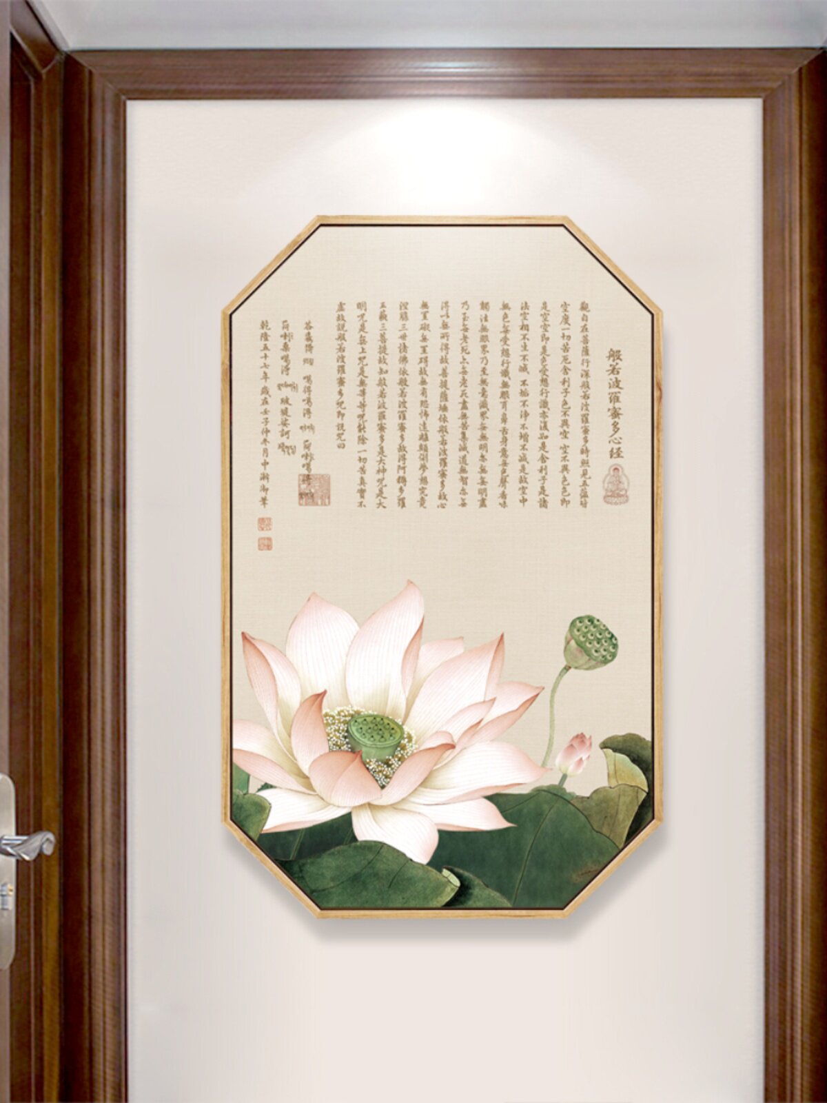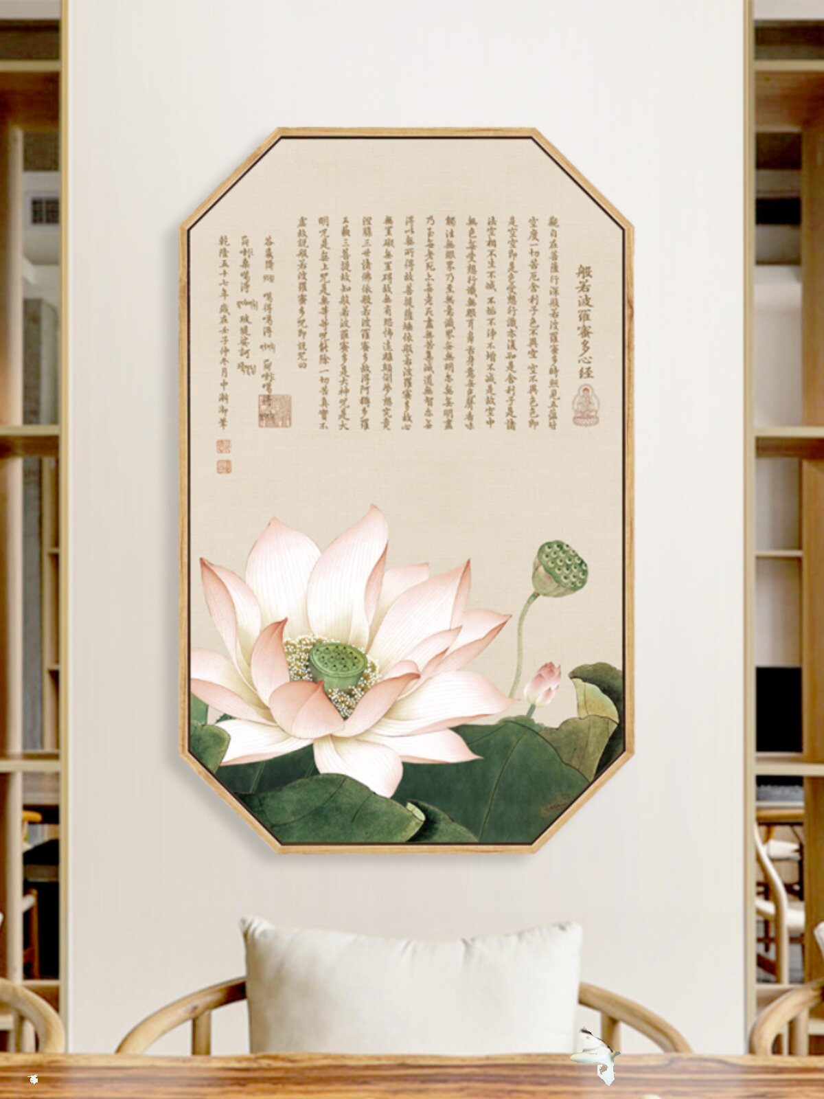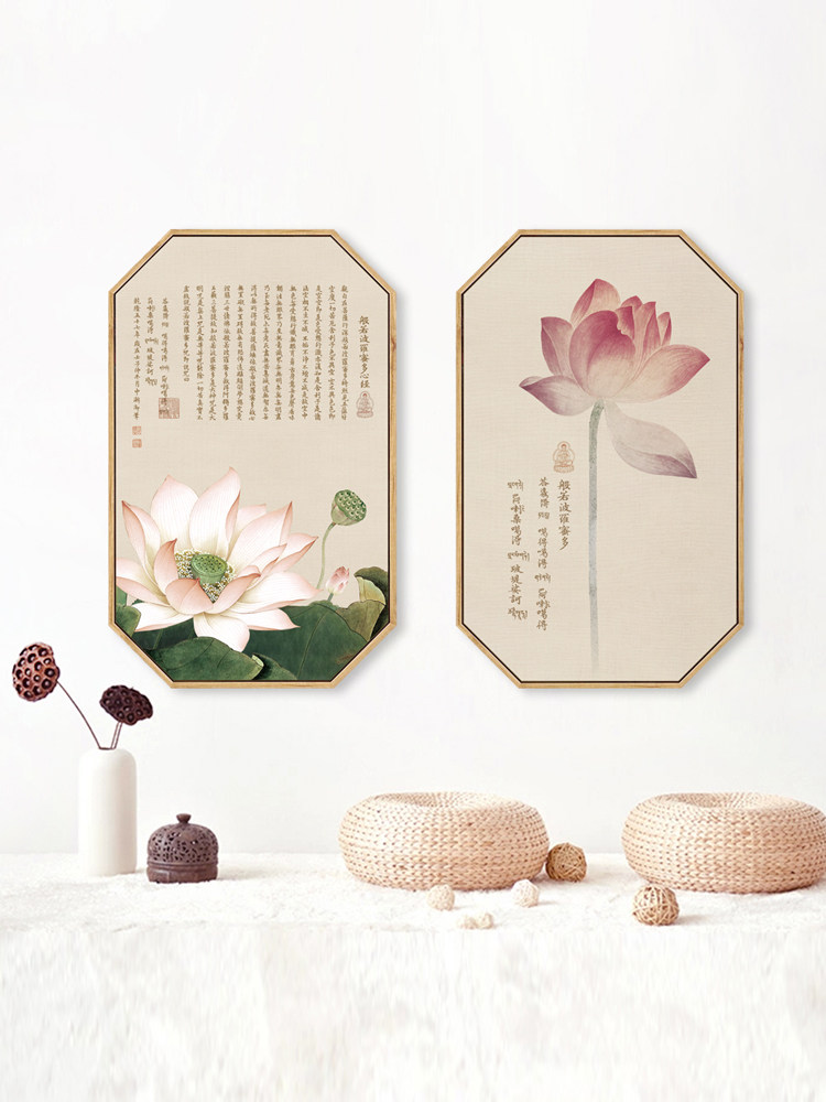 淘宝新中式荷花莲花墙画心经挂画古风禅意装饰画客厅茶室玄关墙饰壁画