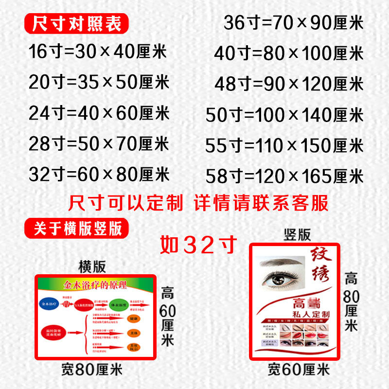 16寸(30×40厘米) 20寸(35×50厘米) 24寸(40×60厘米) 28寸(50×70厘米) 32寸(60×80厘米) 36寸(70×90厘米) 40寸(80×100厘米) 48寸(90×120厘米) 50寸(100×140厘米) 55寸(110×150厘米) 58寸(120×165厘米) 请选择