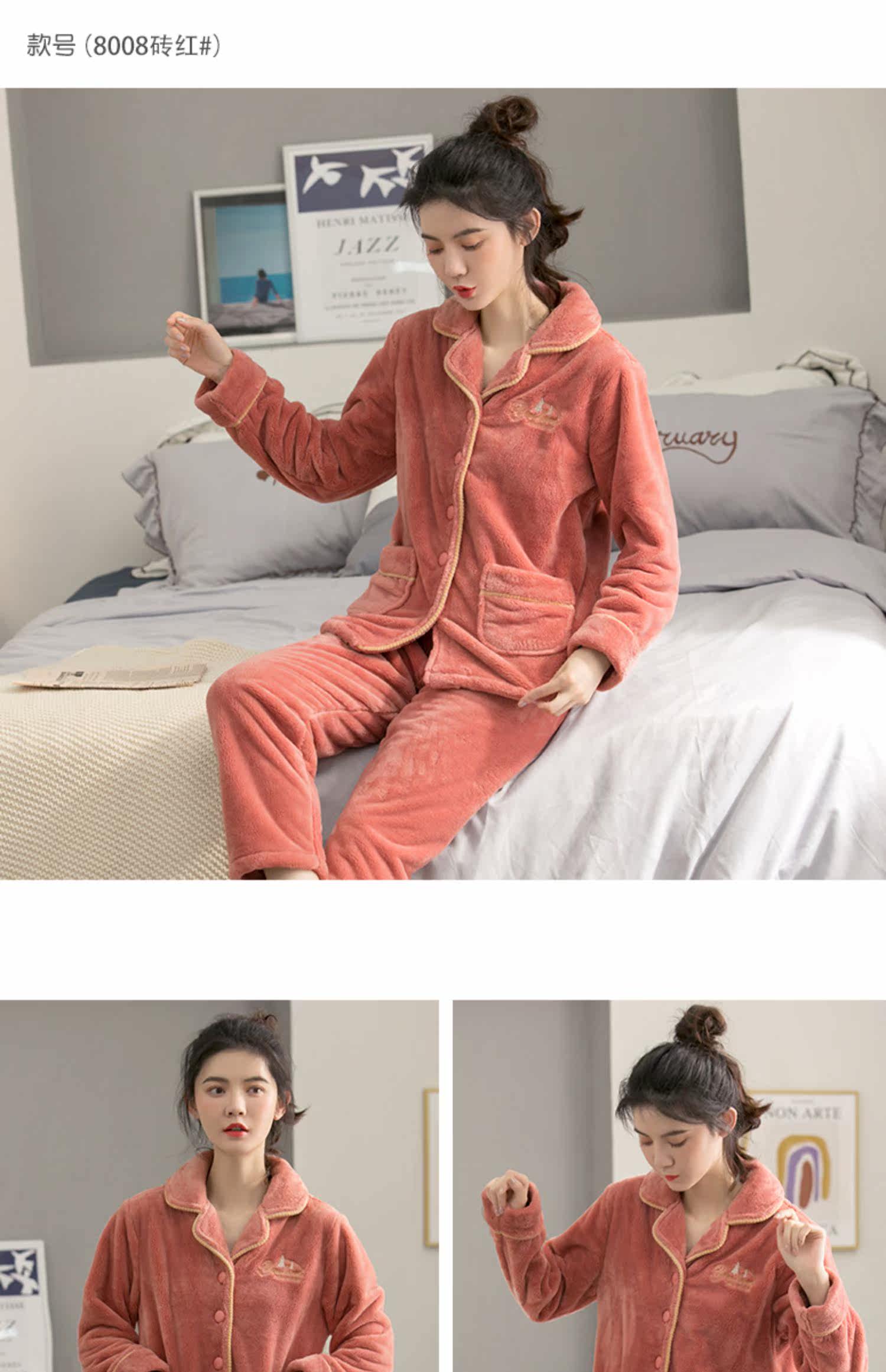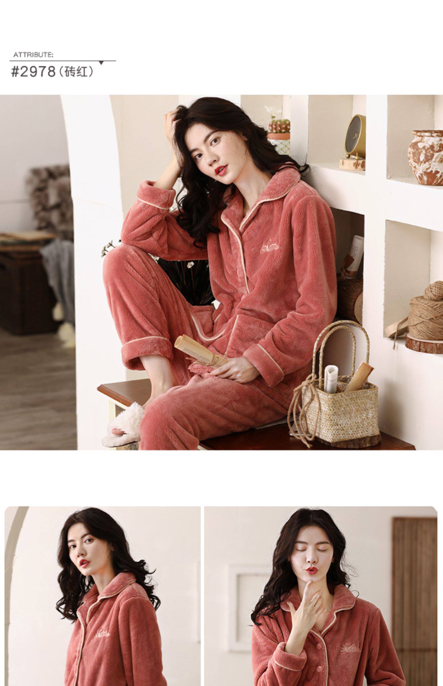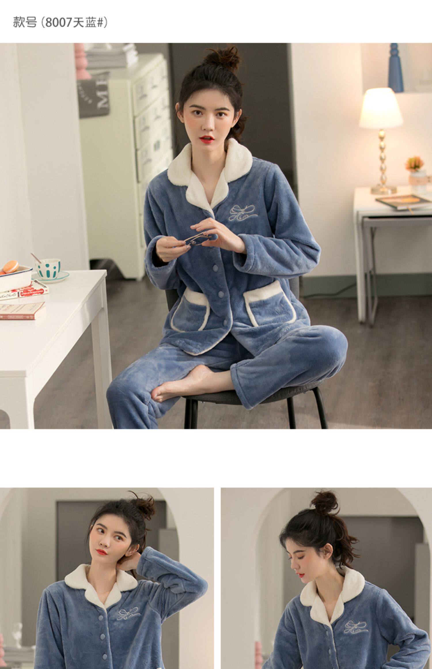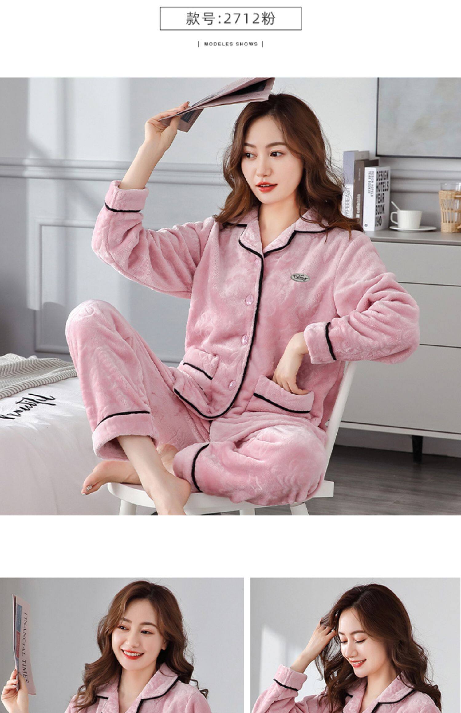 淘宝珊瑚绒睡衣女秋冬季长袖薄款法兰绒保暖大码冬款海岛绒家居服套装