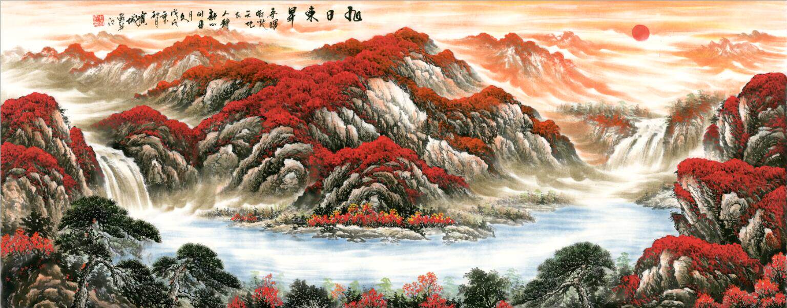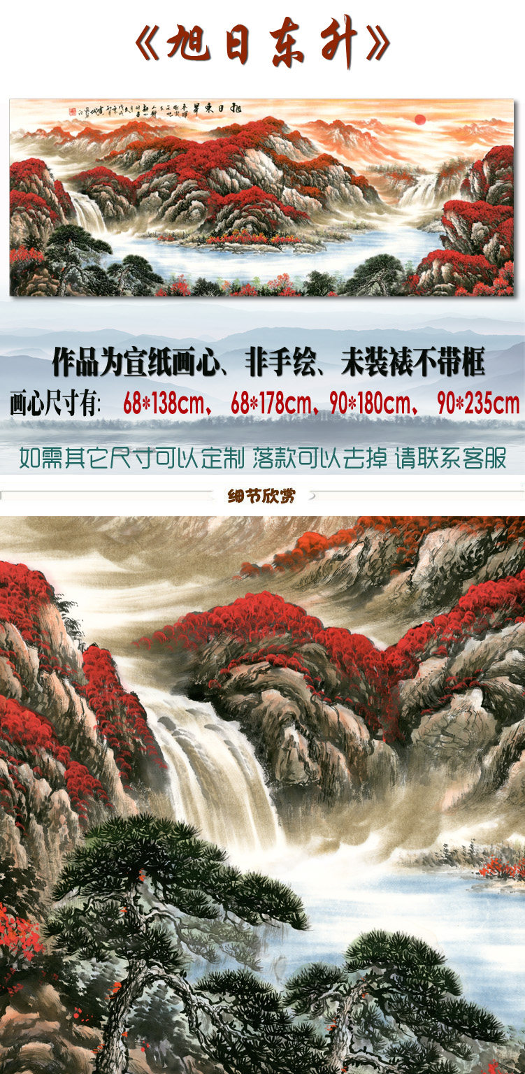淘宝旭日东升画大尺寸山水画小尺寸风水画国画字画装饰招财水墨画心
