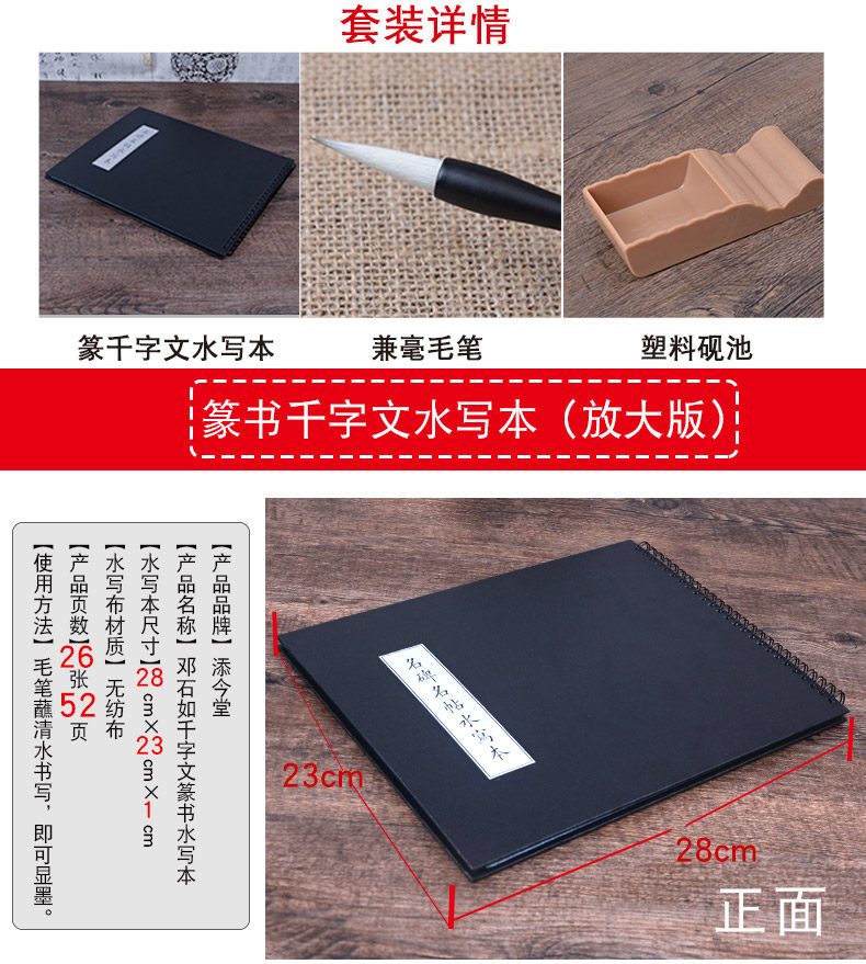 淘宝邓石如篆书千字文毛笔字帖水写布初学套装 小篆初学临摹练字纸毛笔字练字专用水写万次书法布神器字帖本套装