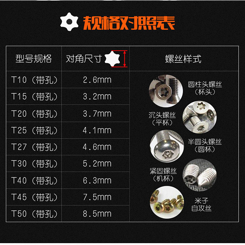 淘宝内六角星型梅花螺丝刀中间带孔空心t20t25花型米字型起子工具套装