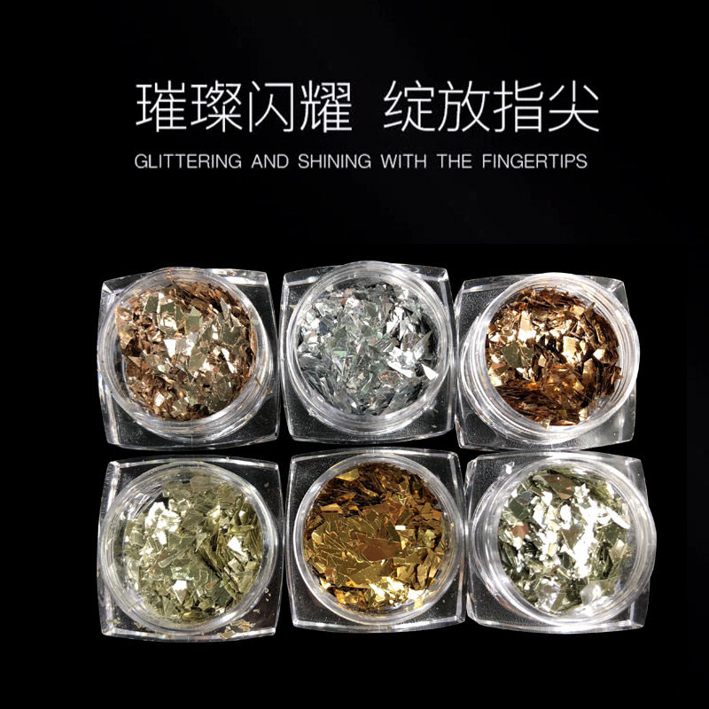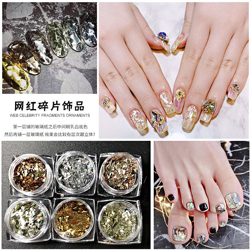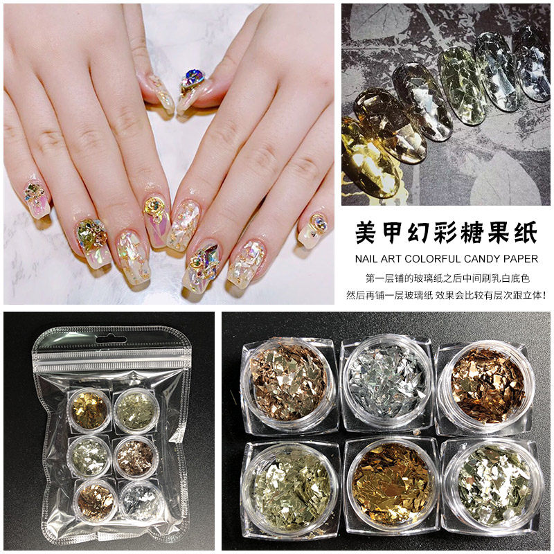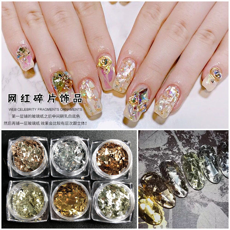 淘宝网红金银色碎片美甲玻璃纸碎片抖音小红书爆款金属极光纸指甲饰品