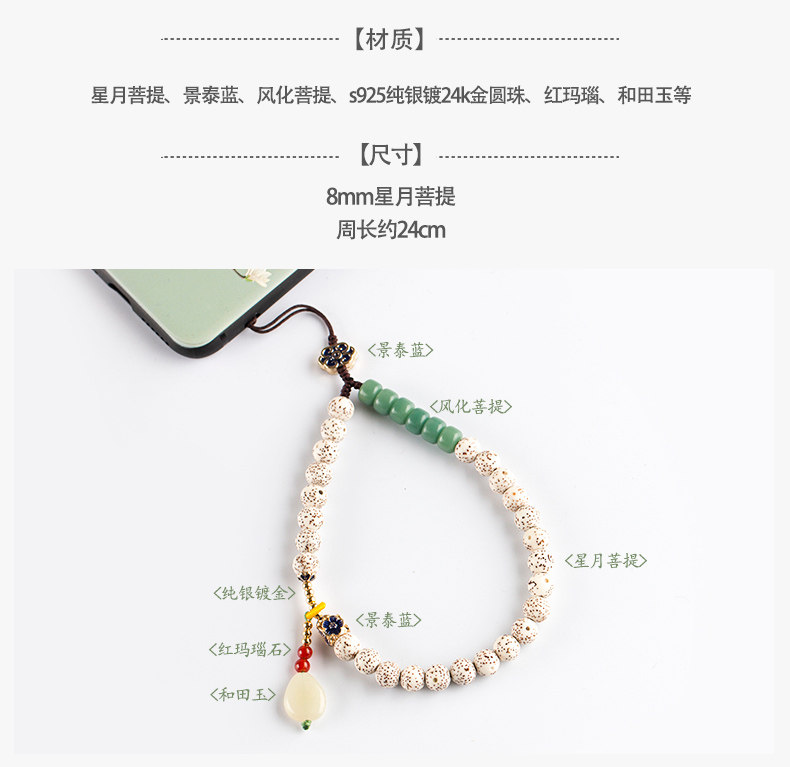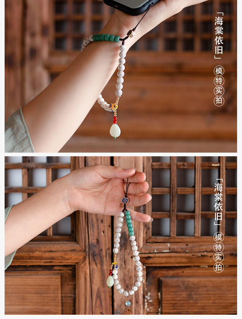 淘宝海棠依旧 子伊原创 创意中国风手机挂绳星月菩提手机链挂腕女百搭