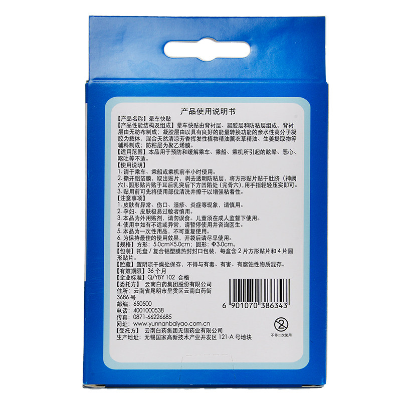 淘宝云南白药泰邦晕车快贴正品旅游常备晕车晕船贴晕机晕车出门旅行