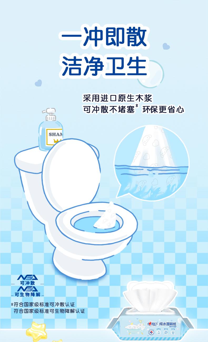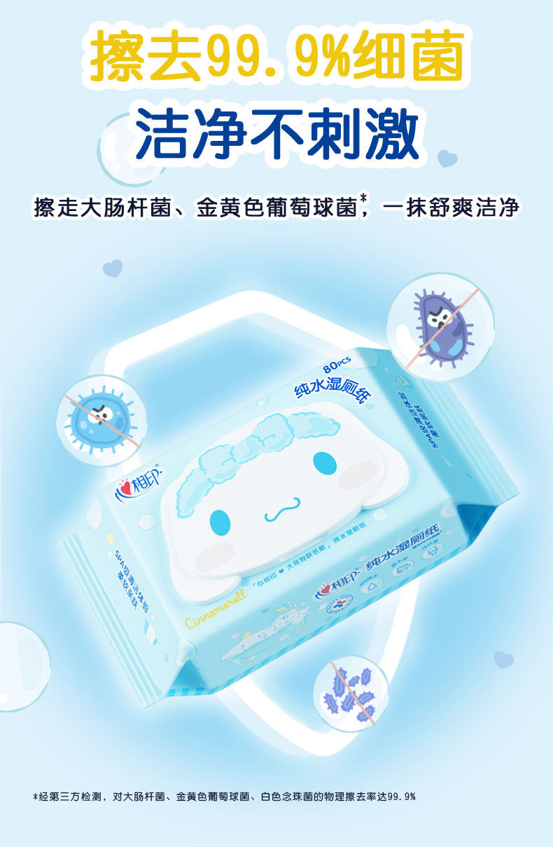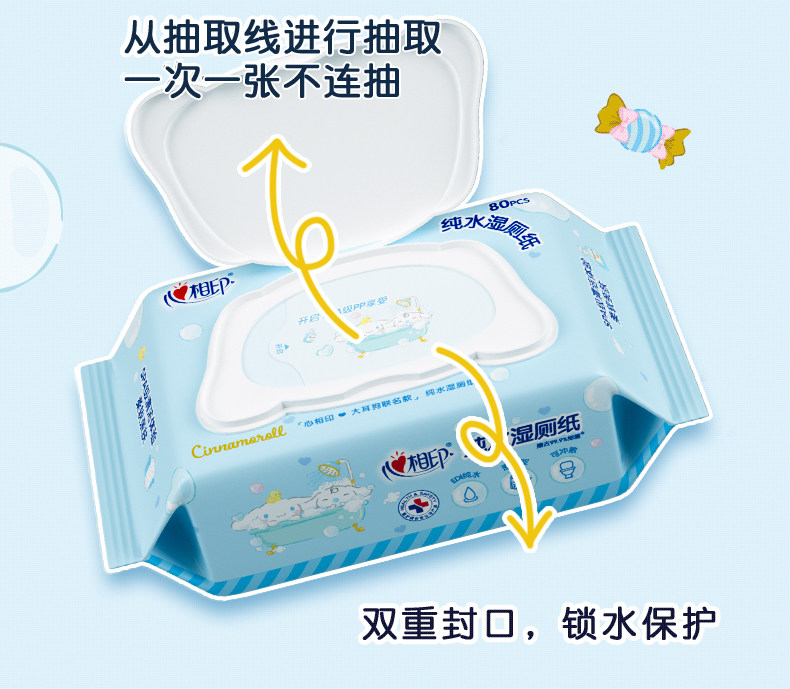 淘宝心心相印官方旗舰婴幼儿湿巾湿手纸清洁湿巾纸卫生纯水480抽6包
