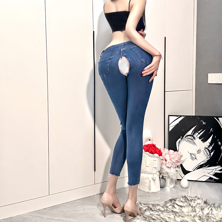 淘宝户外开裆牛仔裤全拉链裤女隐形开档紧身裤性感露出免穿脱约会方便
