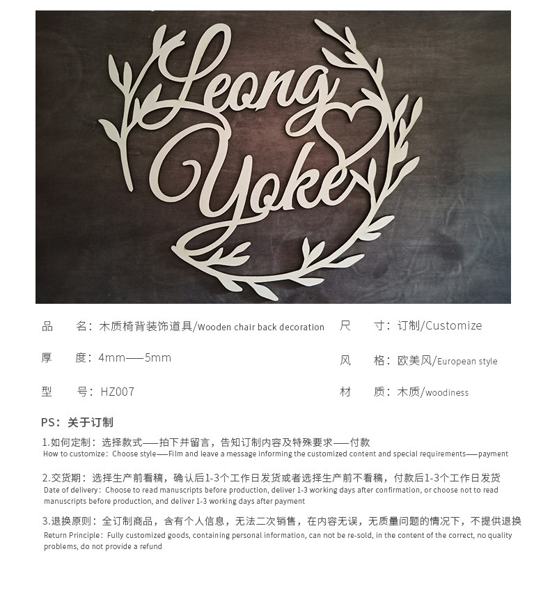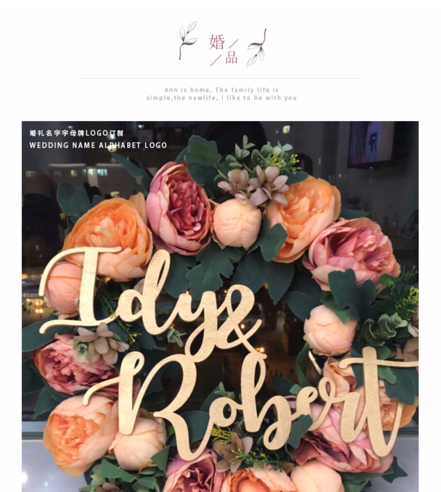 淘宝婚礼名字字母牌LOGO定制 英文背景墙装饰品摆件挂牌木质拱门七夕