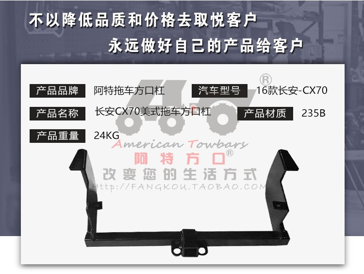 Taobao长安CX70美式拖车方口杠房车牵引臂拖挂钩改装后防撞梁露营拖车钩