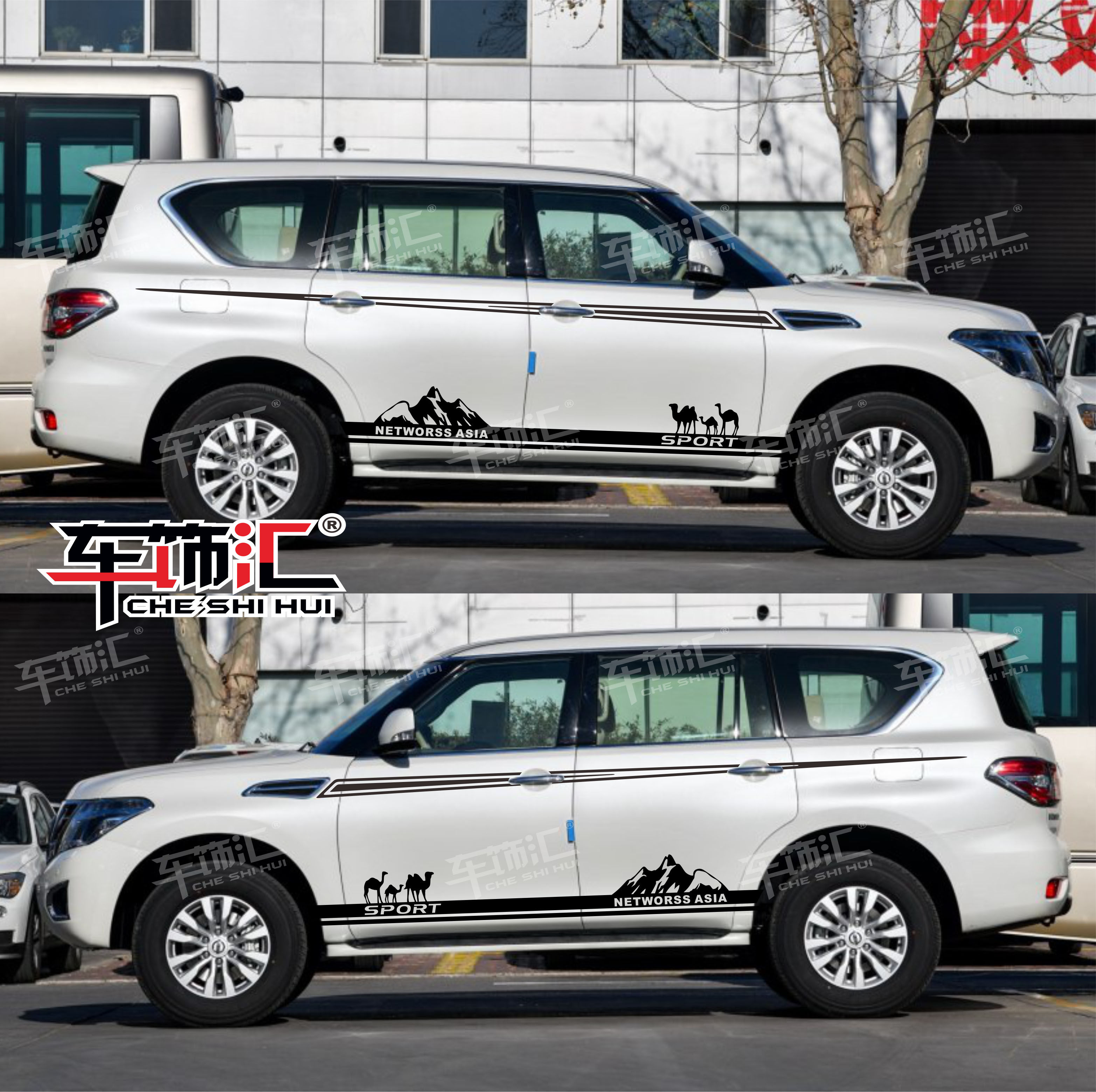淘宝途乐汽车贴纸 尼桑专用改装Y62腰线彩条Y61车身侧裙字母车贴拉花