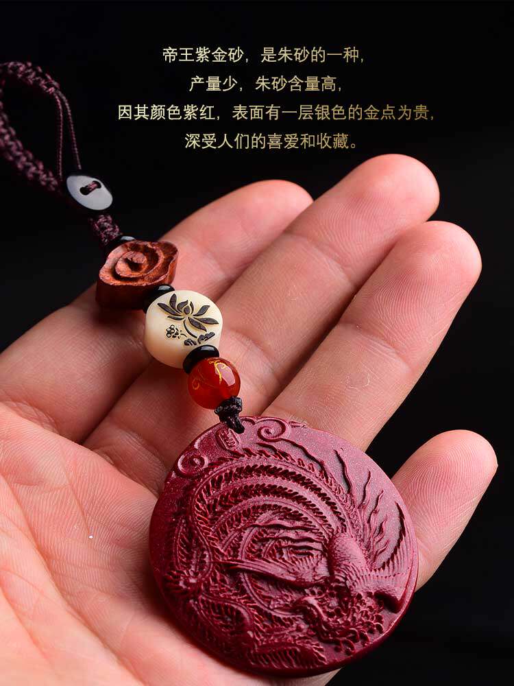 淘宝朱砂火凤凰朱雀吊坠五行补火男女紫金砂项坠项链钥匙扣属火饰品