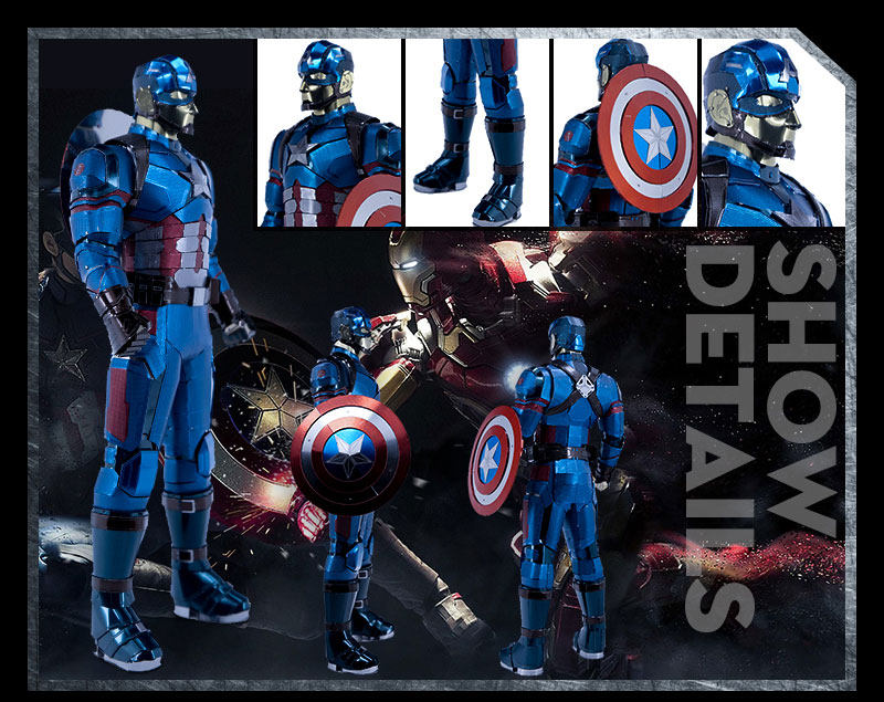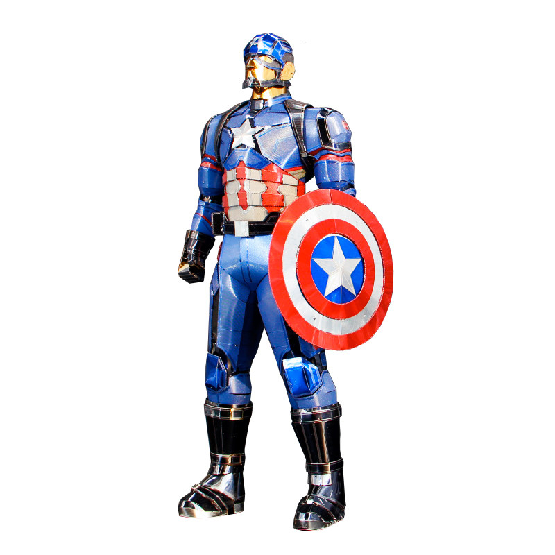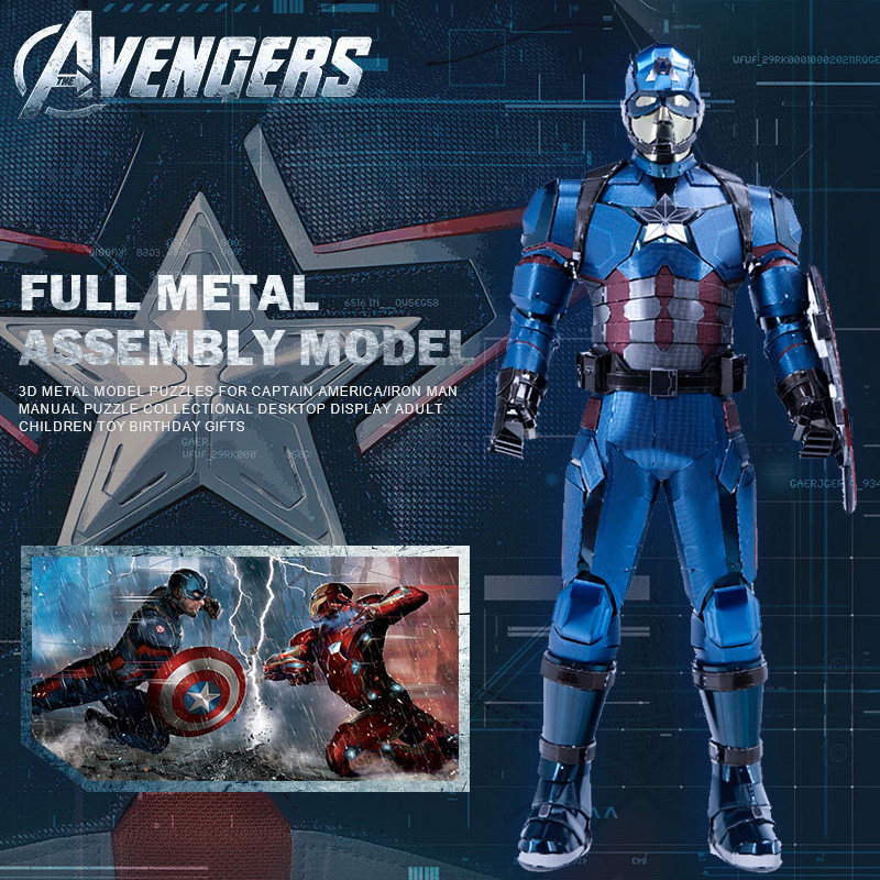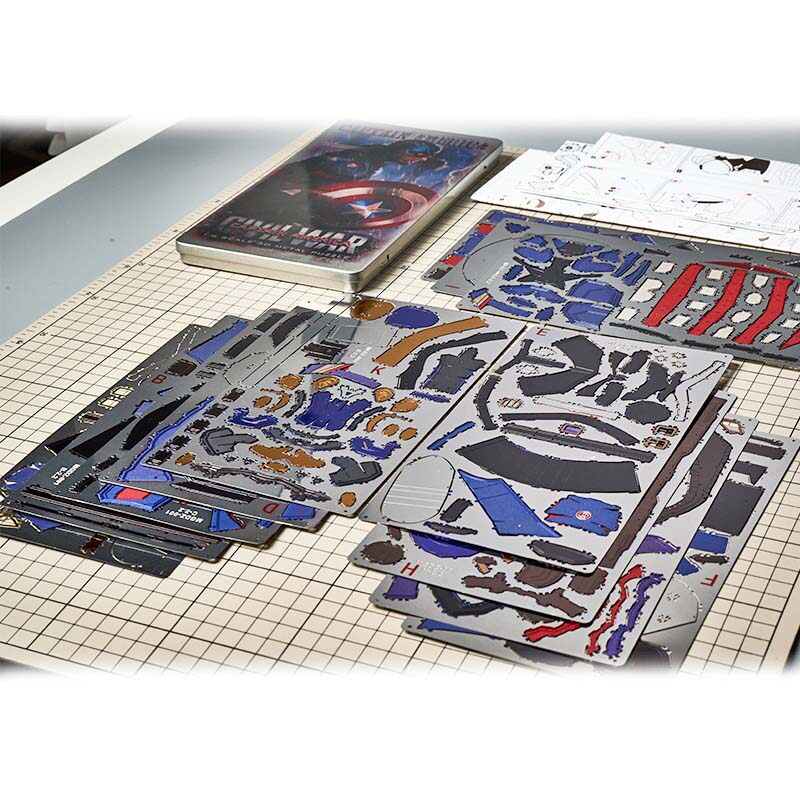 淘宝金属铁艺DIY拼装模型3D立体拼图 1/6美国队长 铁盒版送工具展示盒