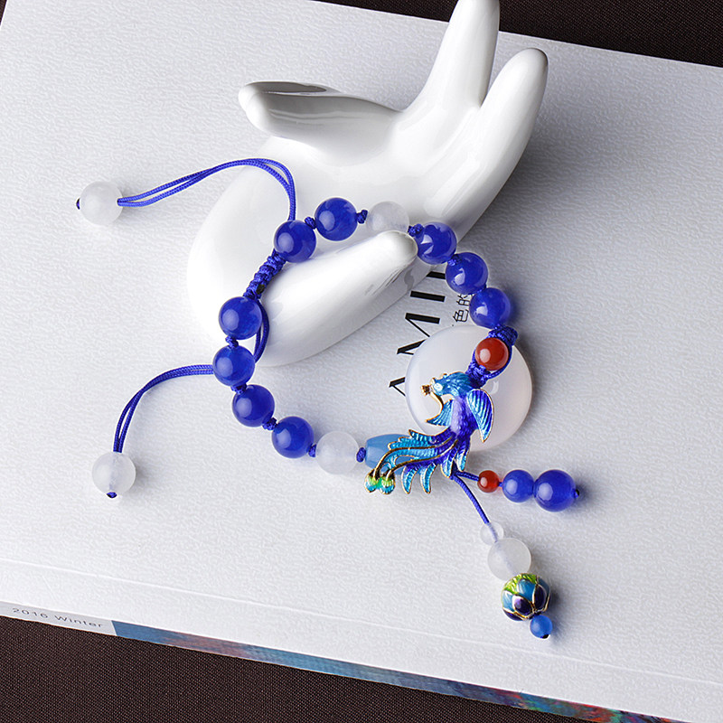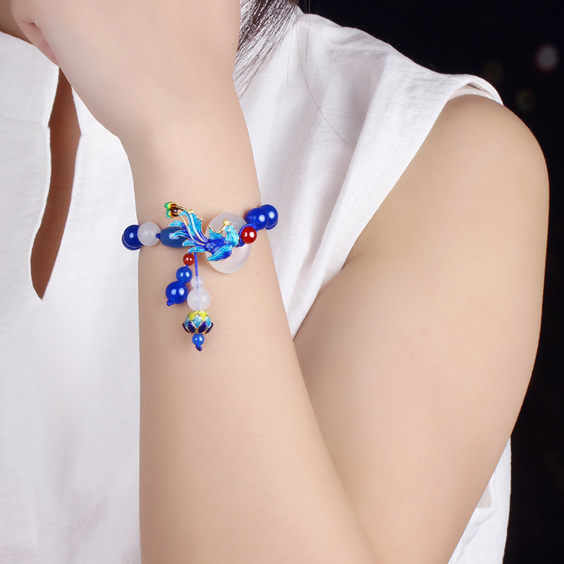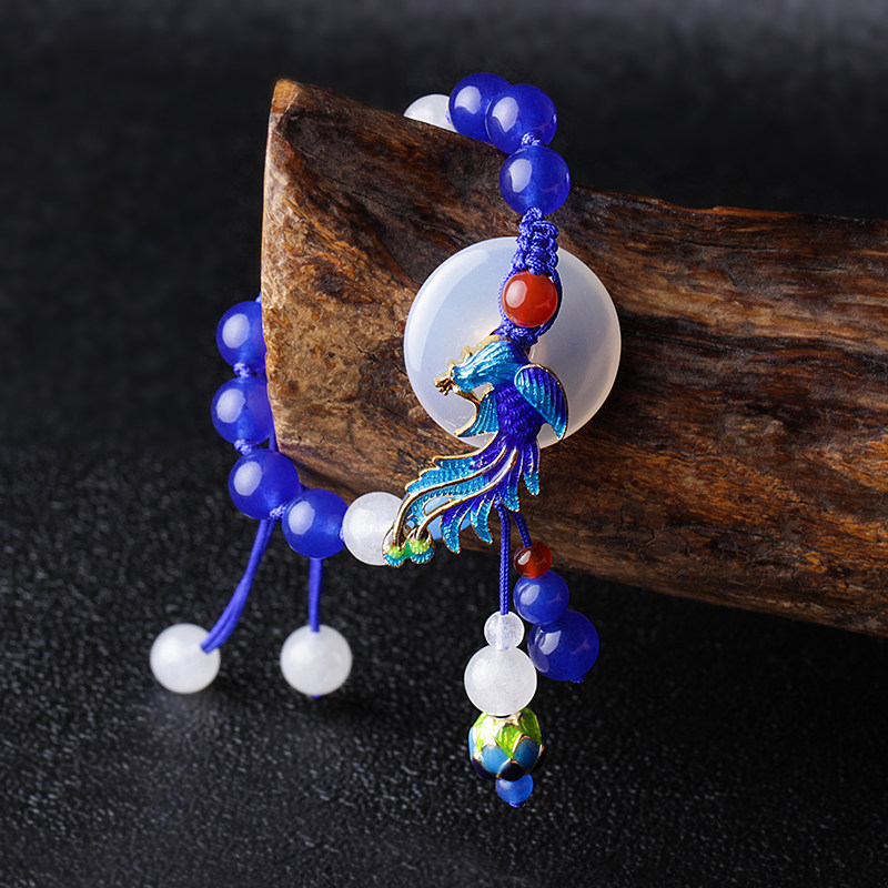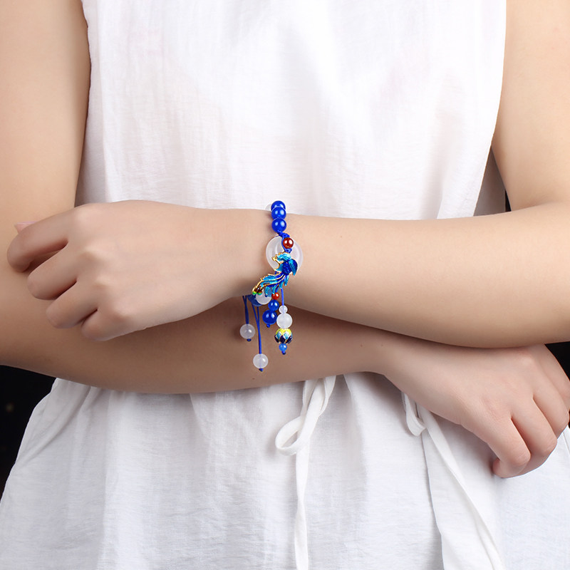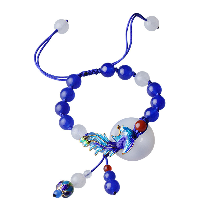 淘宝民族风平安扣手链女复古手工编织手绳蓝玉髓手串古风手饰百搭配饰