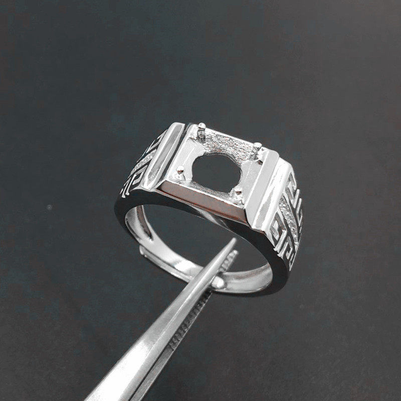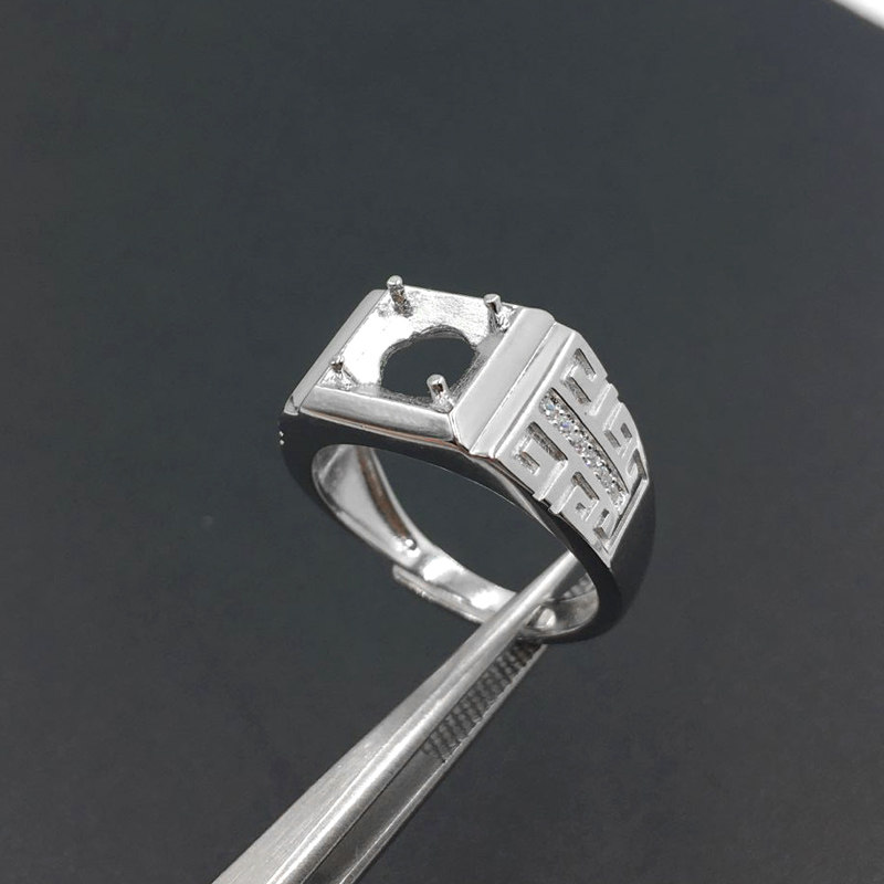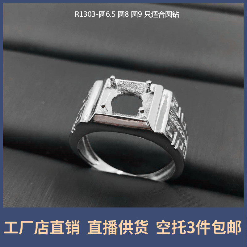 淘宝圆钻男戒托925银戒指空托 男款戒指托 开口银托未镶嵌加工定制