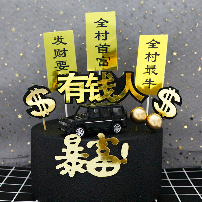 淘宝一夜暴富生日蛋糕装饰插牌男神女神生日快乐插件甜品台装饰插旗