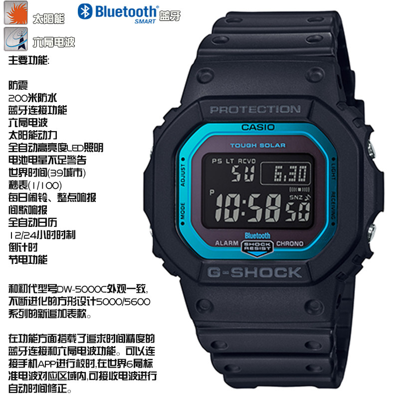 淘宝CASIO卡西欧G-SHOCK光能电波蓝牙手表GW-B5600-2/5600HR/BC-1B/BL