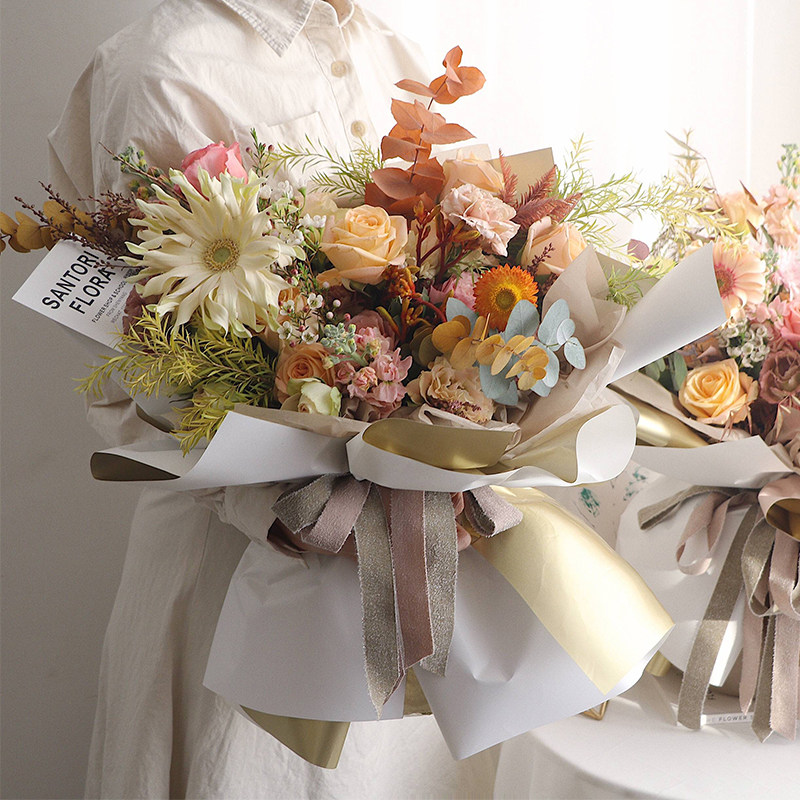 淘宝韩式欧雅纸鎏金纸双面双色金色花艺包花纸开业花篮花束包装纸材料