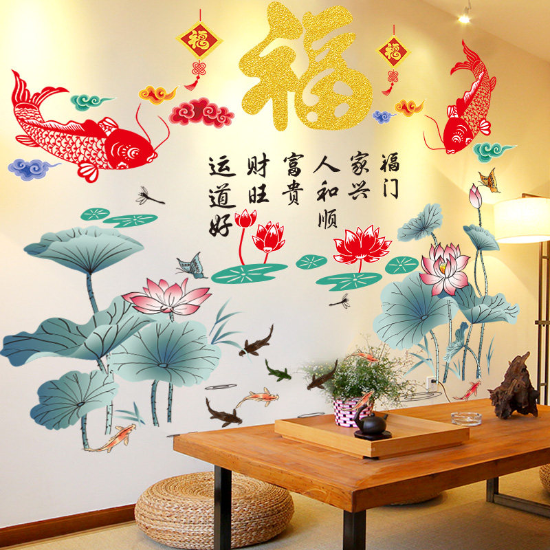 淘宝3D立体墙贴画客厅电视背景墙装饰墙壁纸贴纸新年春节年画自粘墙纸