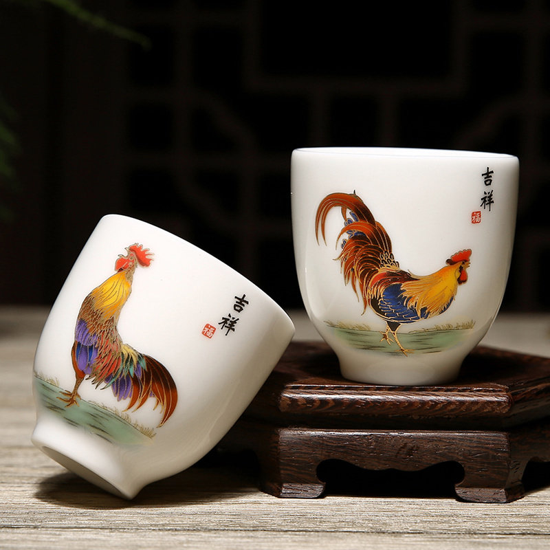 淘宝鸡缸杯德化羊脂玉杯陶瓷杯茶杯品茗杯主人杯个人杯功夫茶具鸡公杯