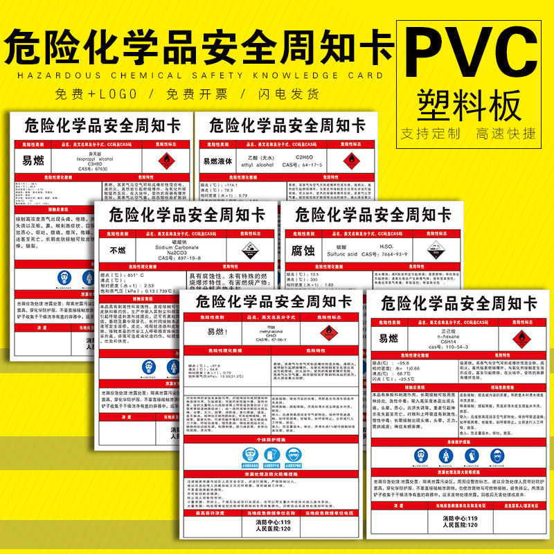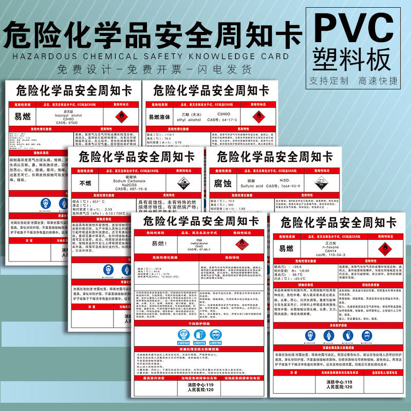 淘宝危险化学品安全周知卡 易燃有毒腐蚀物质职业危害告知乙醇甲苯硫酸硝酸氢氧化钠标志识提示贴定制PVC板警示牌