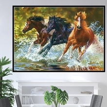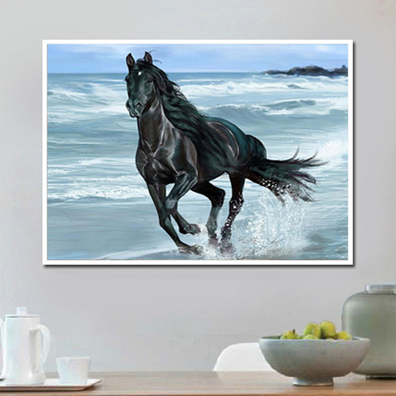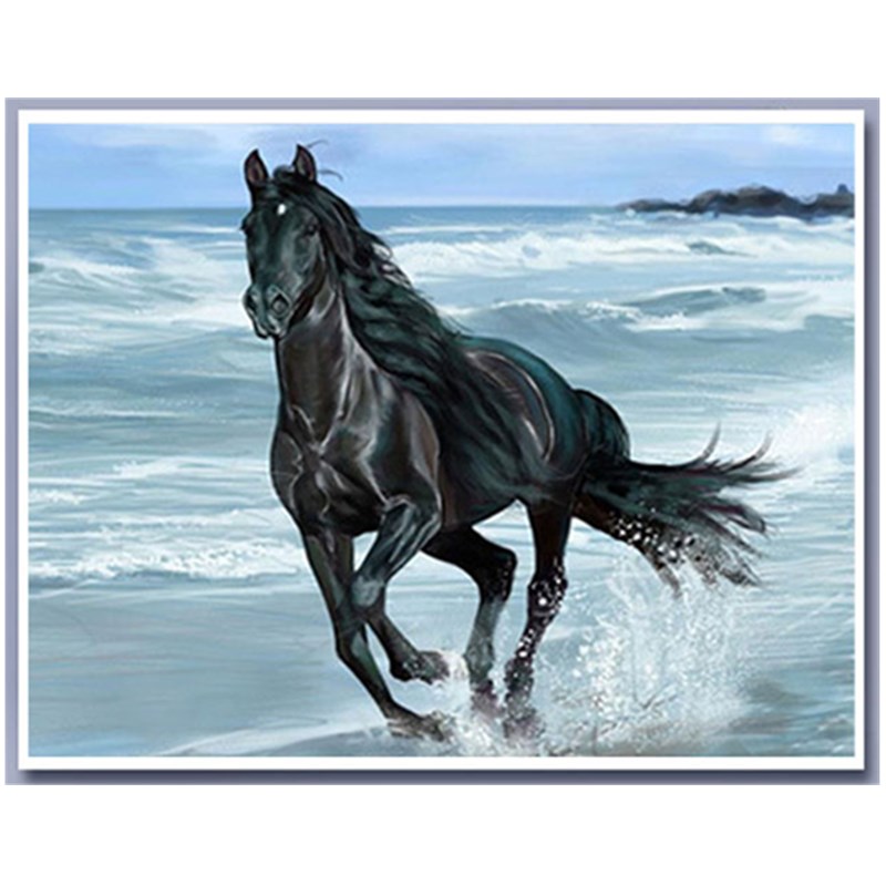 Taobao自己绣骏马奔驰十字绣马到成功钻石画满钻海边一匹黑马2024新款