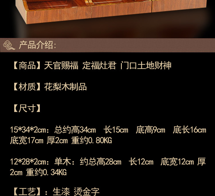 淘宝实木牌位门口土地财神牌位天官赐福牌位定福灶君神牌位神斗摆件