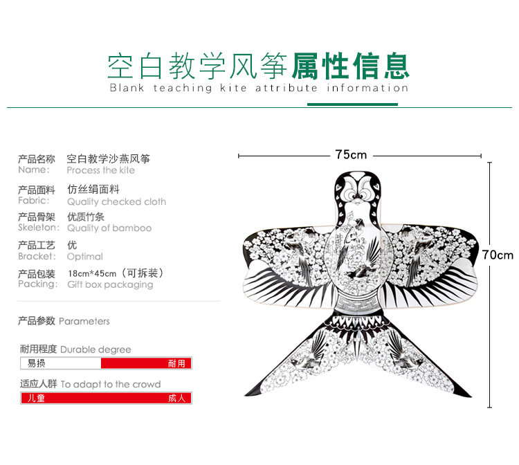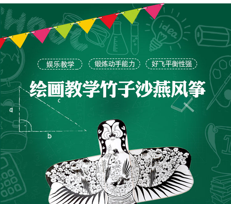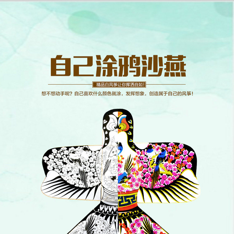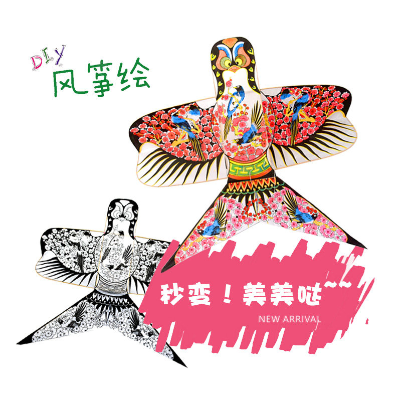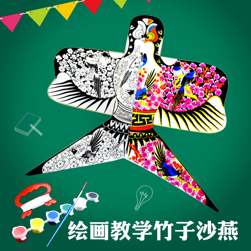 淘宝潍坊风筝儿童diy手绘涂鸦教学沙燕空白风筝传统高档纸鸢微风易飞
