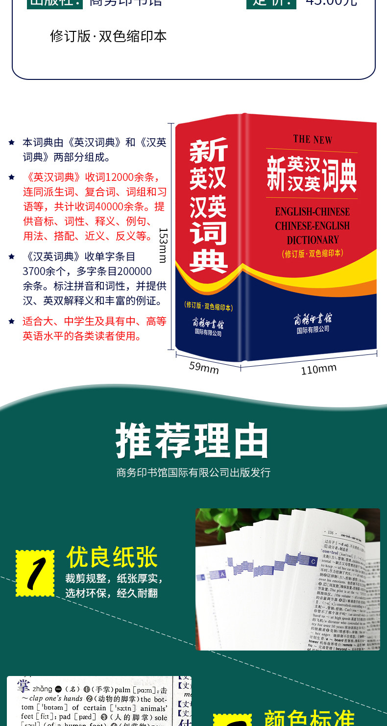淘宝正版 新英汉汉英词典 商务印书馆 英汉双解词典初高中小学生中英文互查翻译工具书教辅音标英译汉汉译英学生牛津英语字典