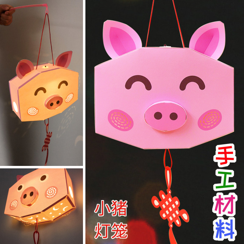 淘宝小猪灯笼diy制作手工材料包 新年元宵春节儿童花灯幼儿园自制手提