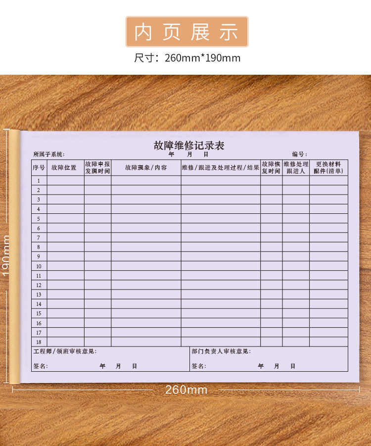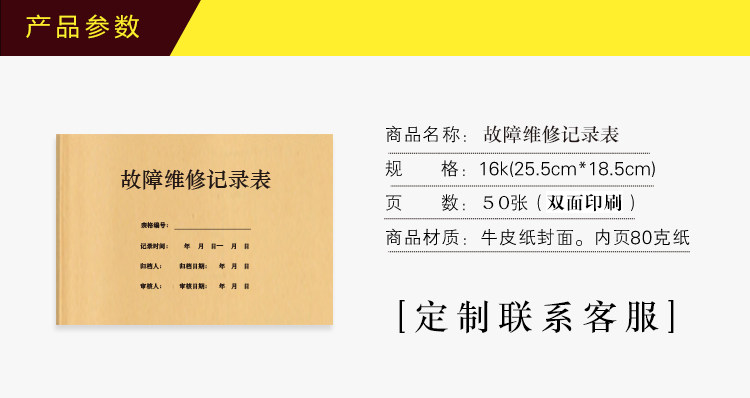 淘宝故障维修记录表物业管理小区器材设备登记本机械工程保养日志册子