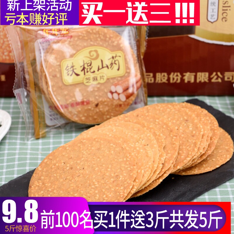 淘宝买1送3发5斤铁棍山药芝麻瓦片薄脆休闲零食网红办公室煎饼包装