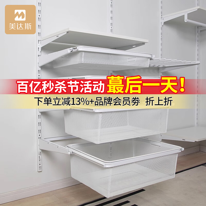 淘宝⑧美达斯金属衣帽间衣柜抽篮衣物收纳篮储物篮抽屉式衣柜密网篮