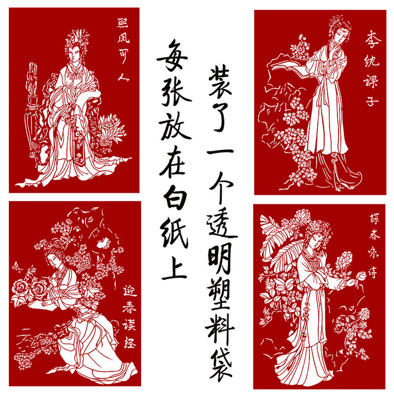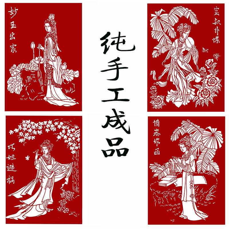 淘宝纯手工剪纸红楼梦十二金钗装饰画中国风刻纸成品镂空作品仕女古典