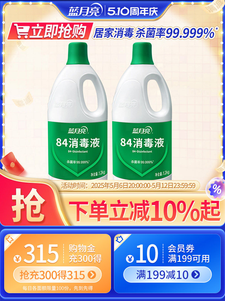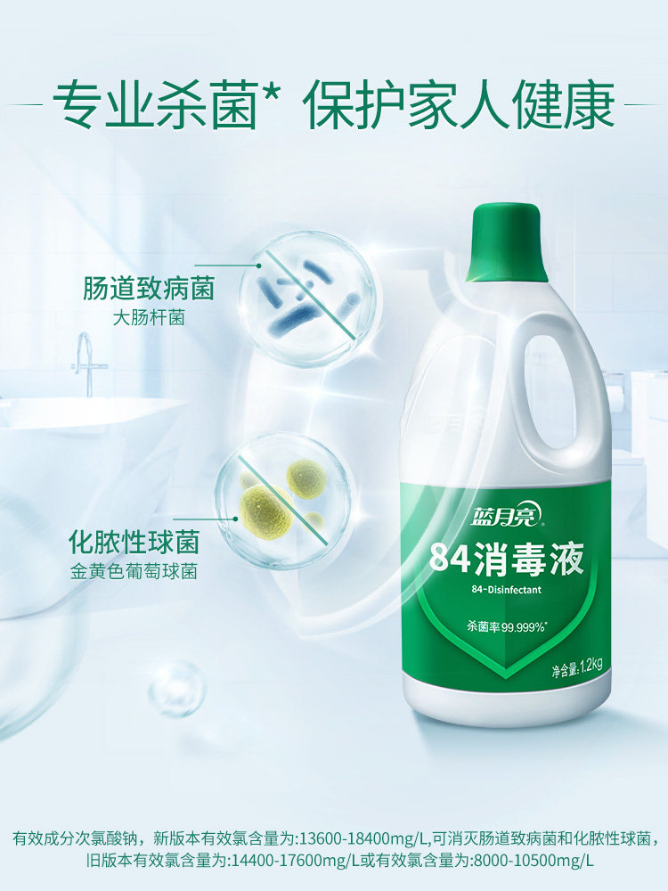 淘宝蓝月亮84消毒液1.2kg*2 家用杀菌消毒水 次氯酸钠消毒液家居消毒