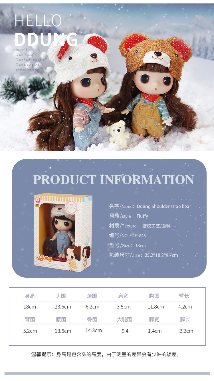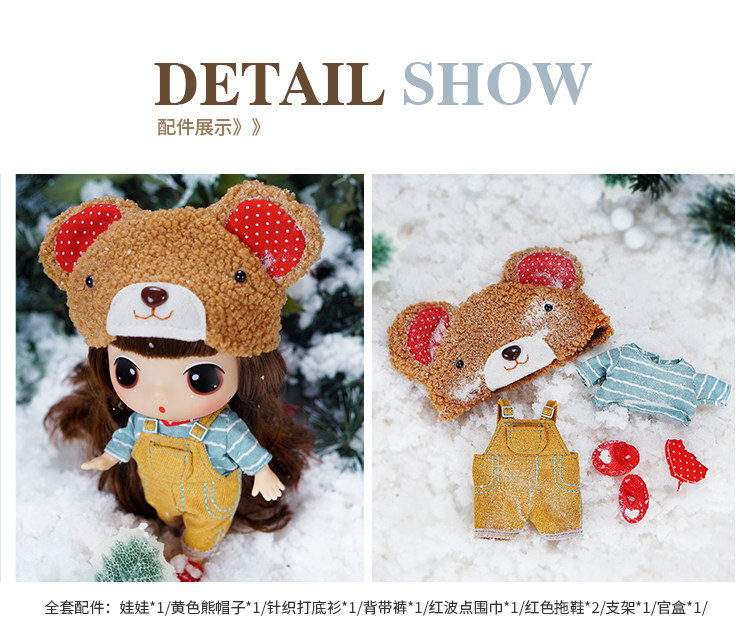 淘宝ddung冬己18cm背带熊换装娃娃迷糊可爱女孩萝莉娃娃挂件公仔