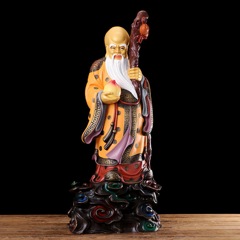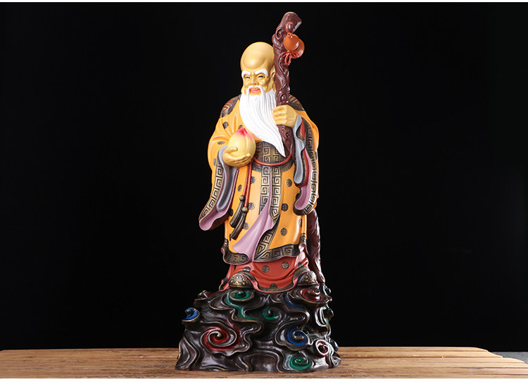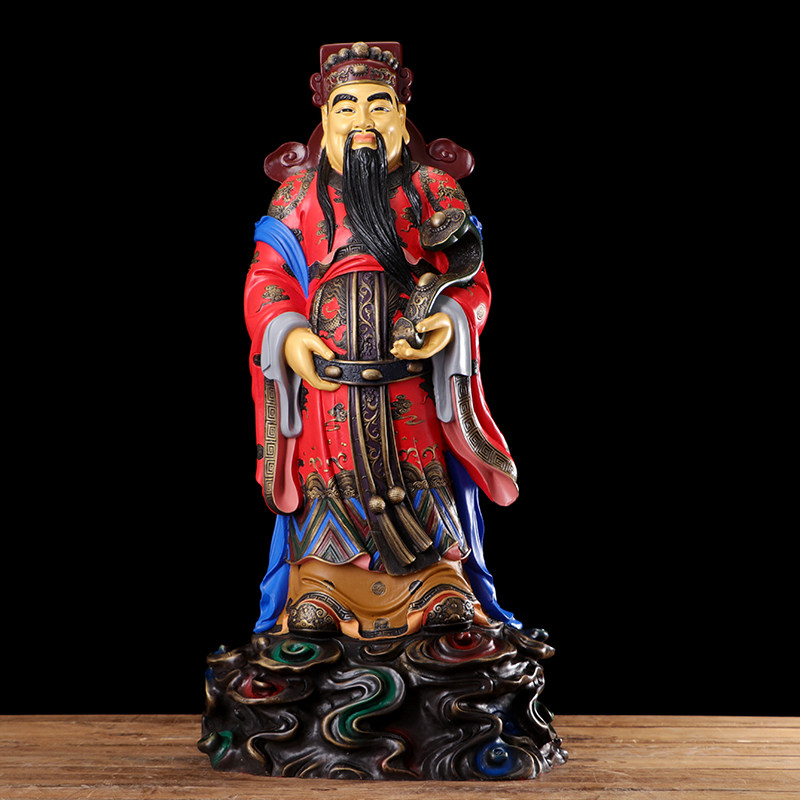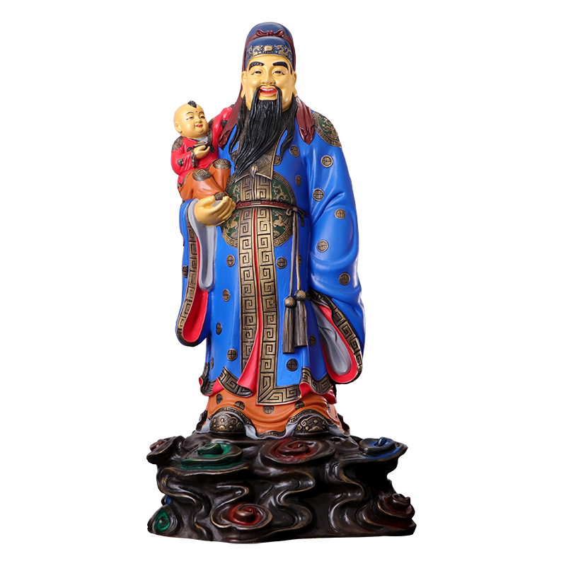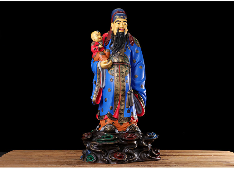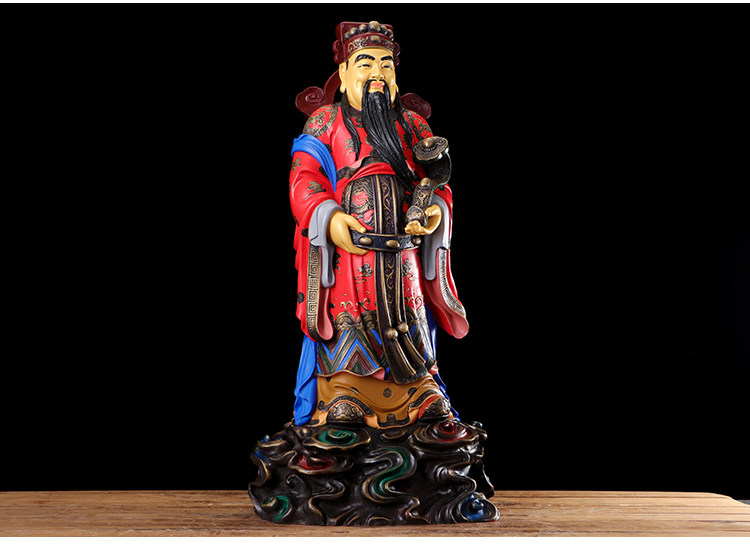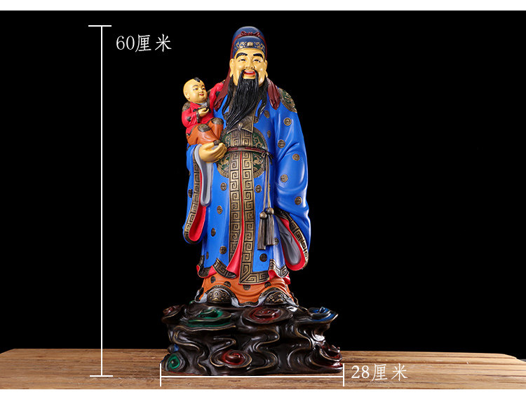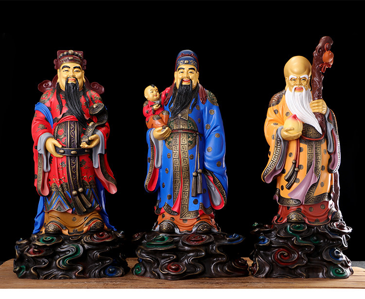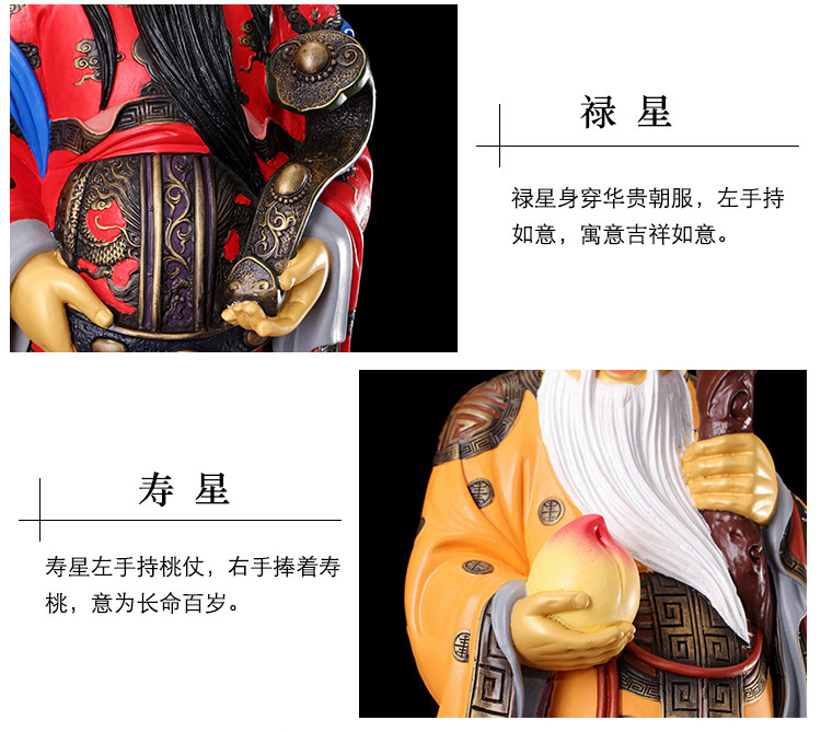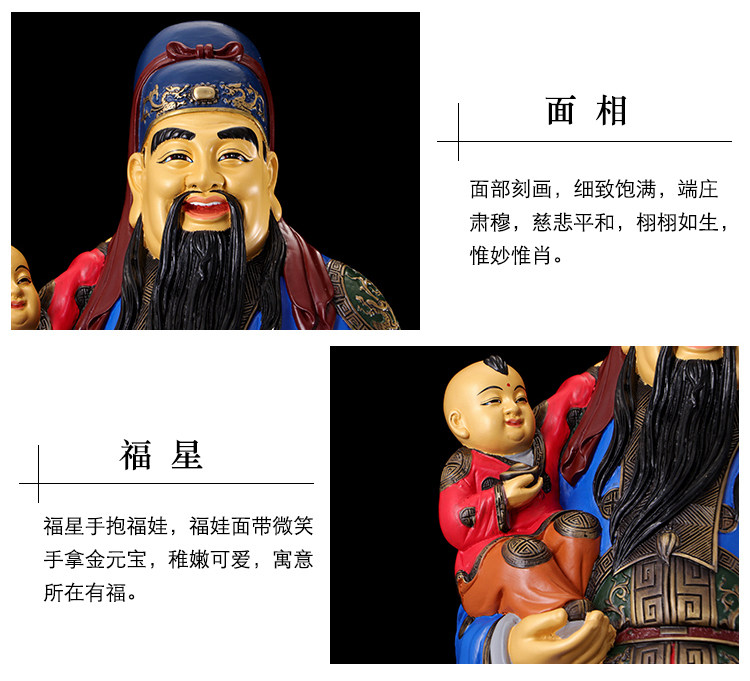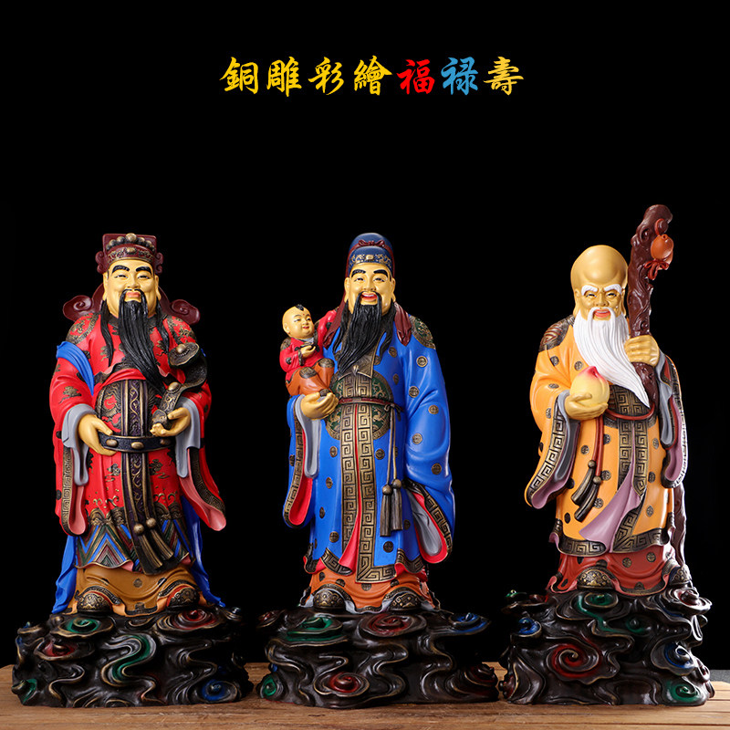 淘宝圆通佛具福禄寿三星佛像铜彩绘财神爷家居客厅风水纳福神像摆件