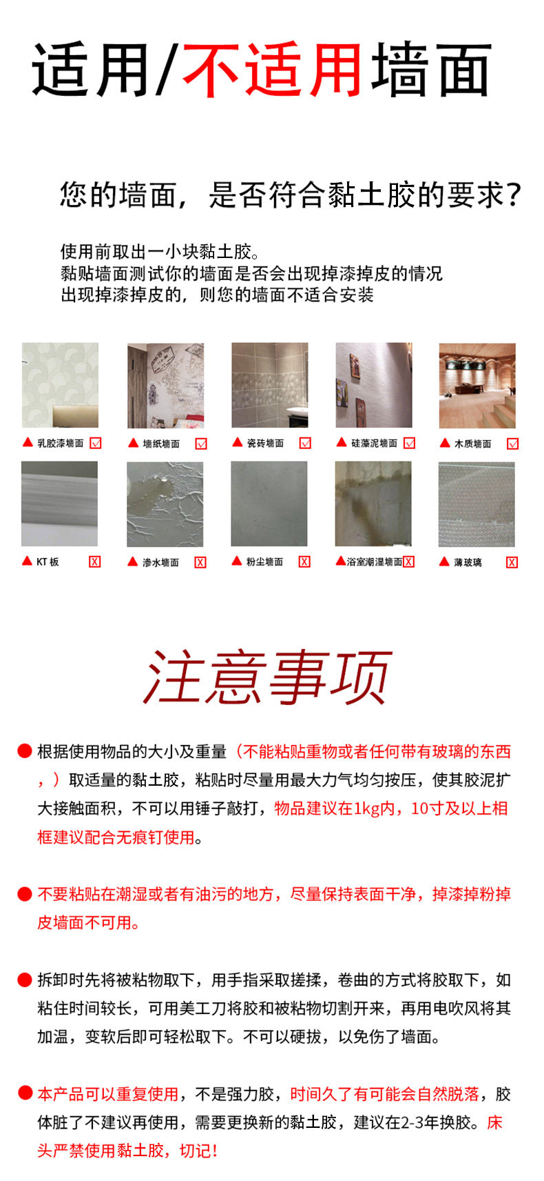 淘宝辉柏嘉无痕粘胶照片墙相框海报固定免钉胶婚房布置对联气球粘贴耳机清除灰尘胶泥75g双面胶黏土