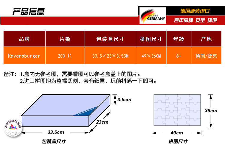 淘宝睿思Ravensburger丛林 野生动物200片德国进口儿童拼图益智12660