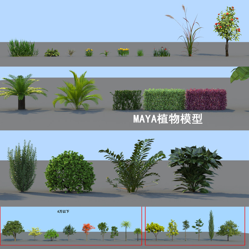 淘宝maya模型素材植物超写实树木花草灌木大树模型三维影视动画带贴图