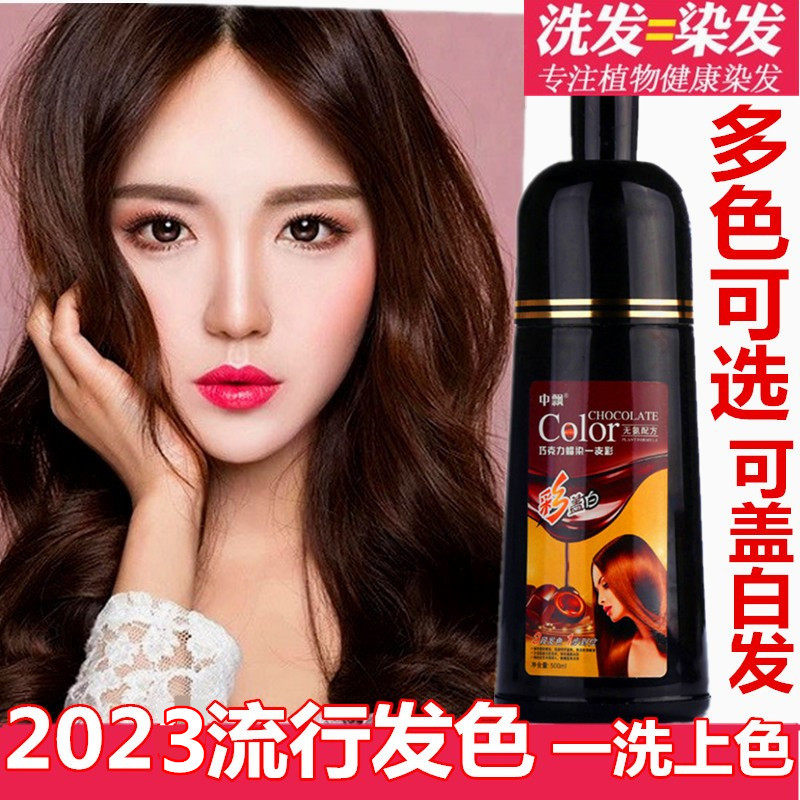 淘宝葡萄紫染发剂2023流行色显白咖啡栗子酒红蓝黑金棕亚麻棕色染发膏