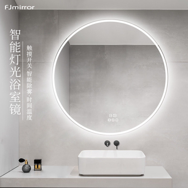 淘宝智能卫浴发光圆镜厕所卫生间壁挂浴室镜圆形防雾镜子led灯梳妆镜