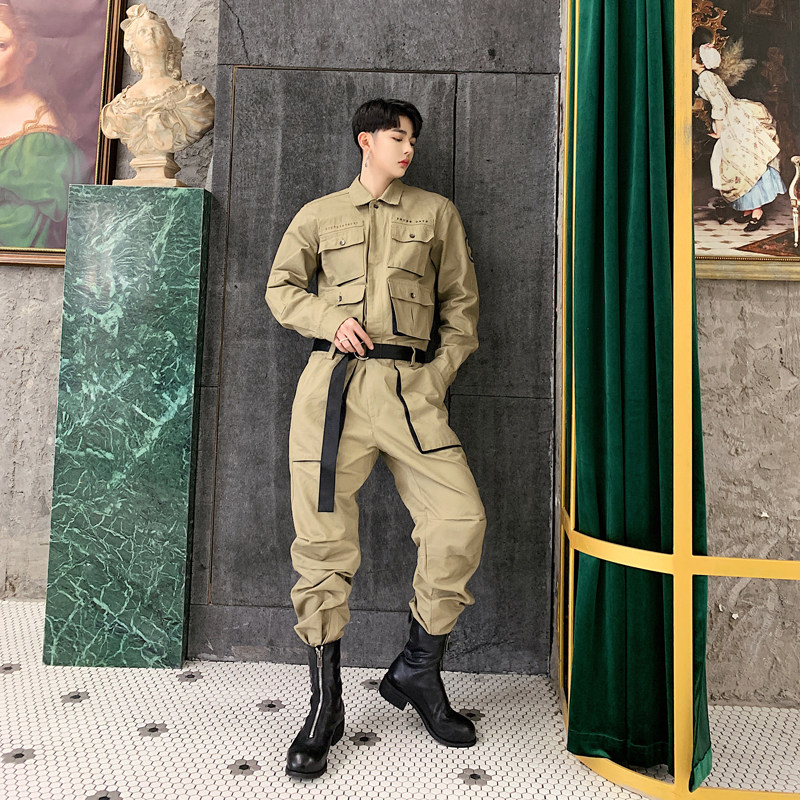 淘宝春装新款多口袋设计ins超火的嘻哈宽松工装连体裤潮牌男装连衣裤