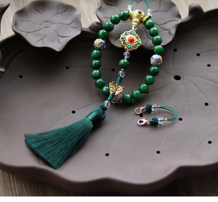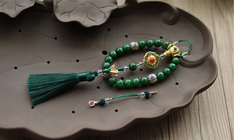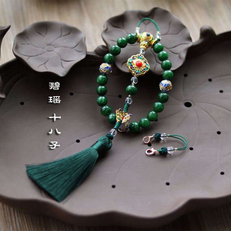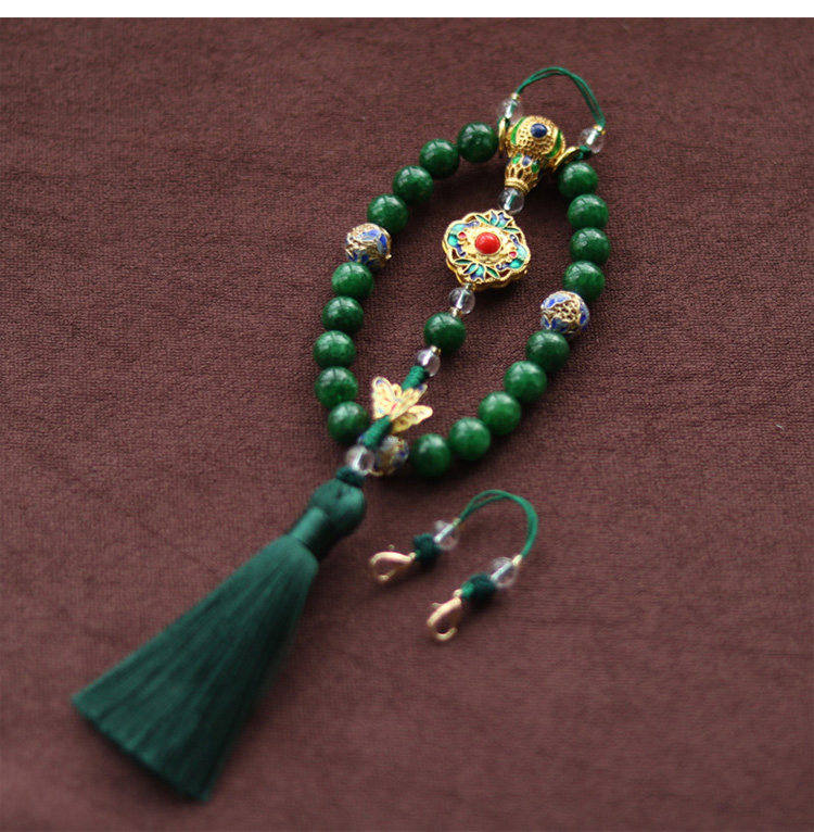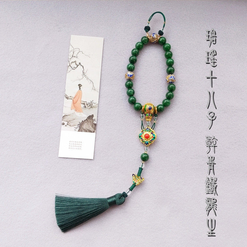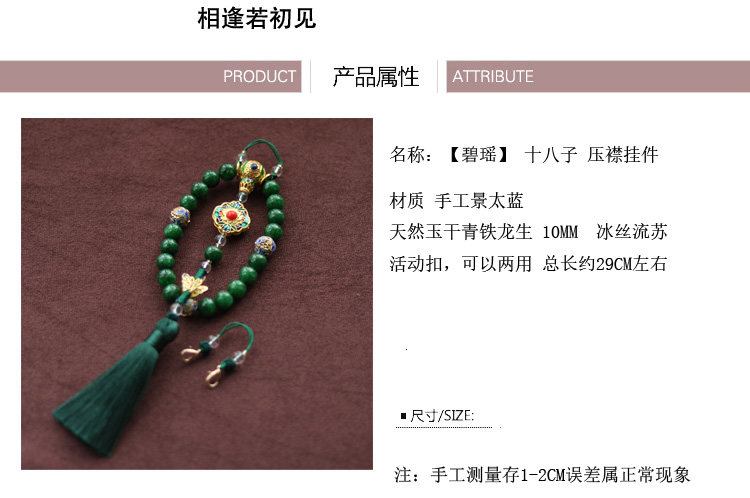 淘宝十八子压襟 延禧攻略 天然干青玉石手串 吊坠 流苏 旗袍压襟挂件